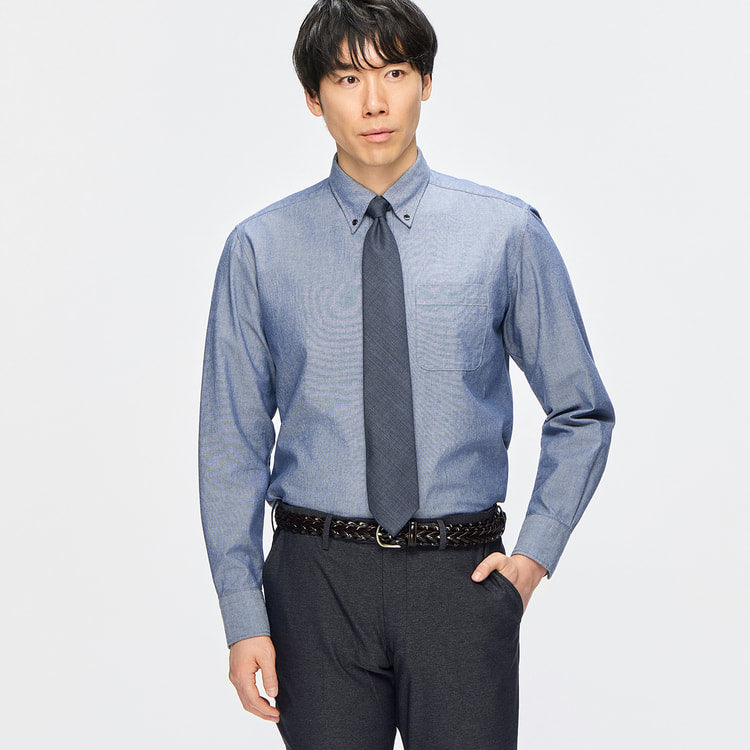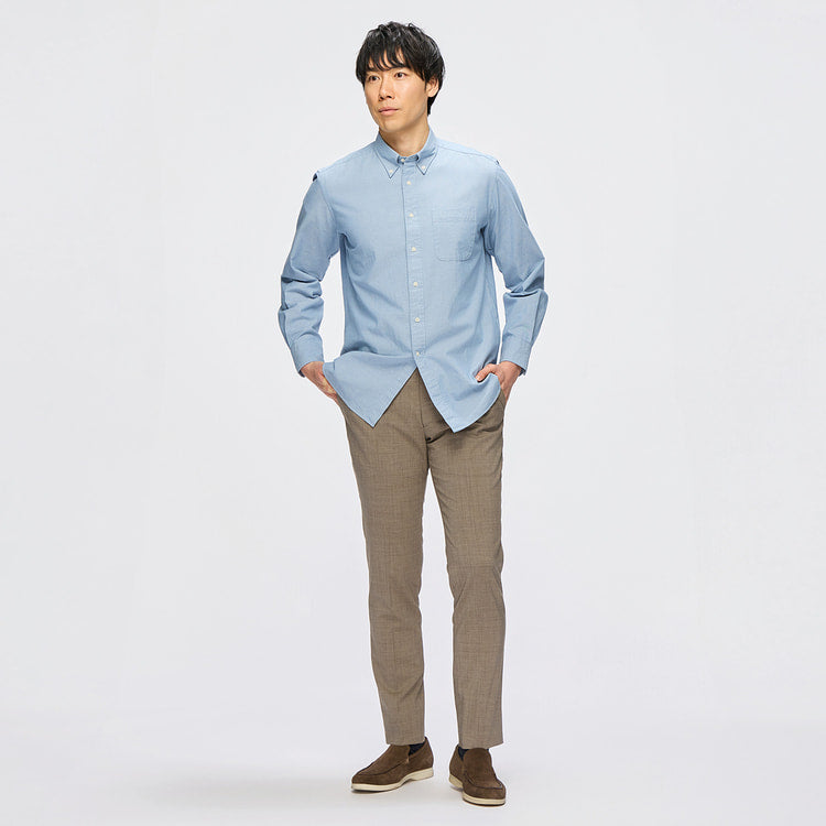 领口与衣身前侧使用柔软衬芯,略宽版型好活动,衬衫衣长精心计算,扎与不扎都俐落。