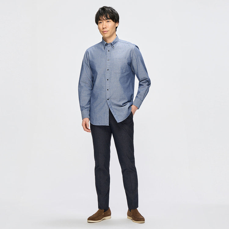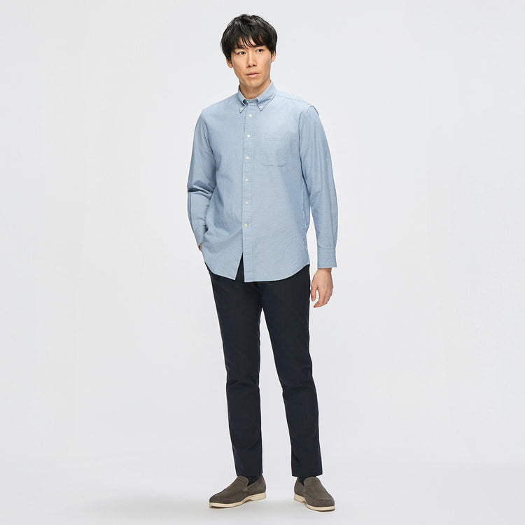 Designed with intentional post-wash crinkles for a refined, relaxed look, this garment-washed piece eliminates the need for ironing and frees you from morning maintenance.
