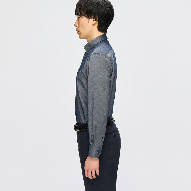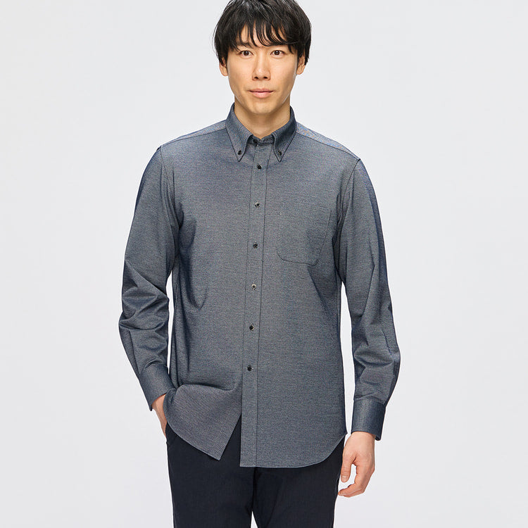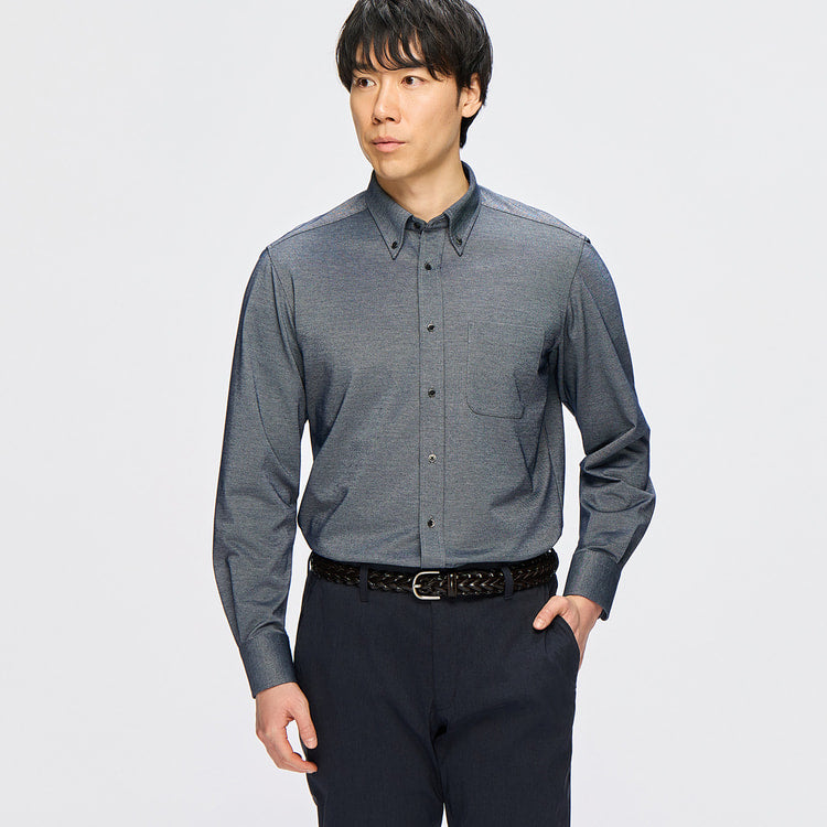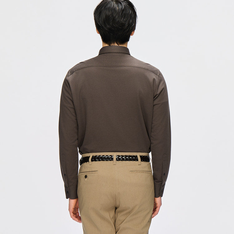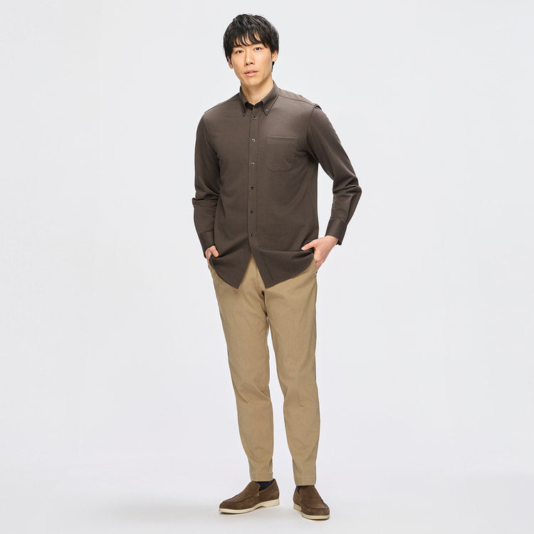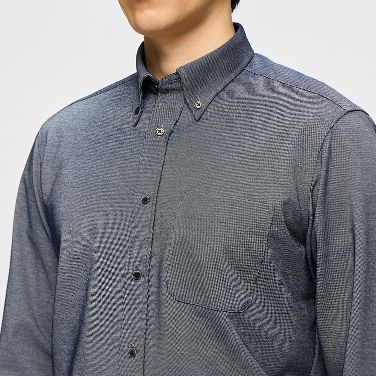 With a softly structured collar and placket, this button-down style helps maintain a clean collar shape even without a tie, creating a consistently neat and polished neckline.