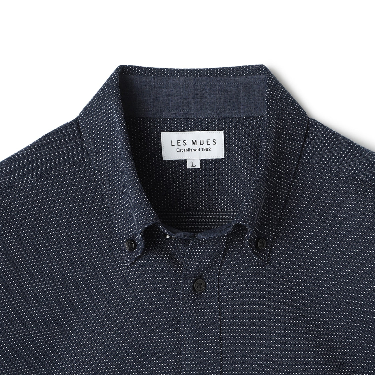 這款鈕扣襯衫有微妙的多臂編織圖案。即使沒有領帶,衣領也能保持原來的形狀,無論單穿或多層穿著,都能打造出利落的造型。
