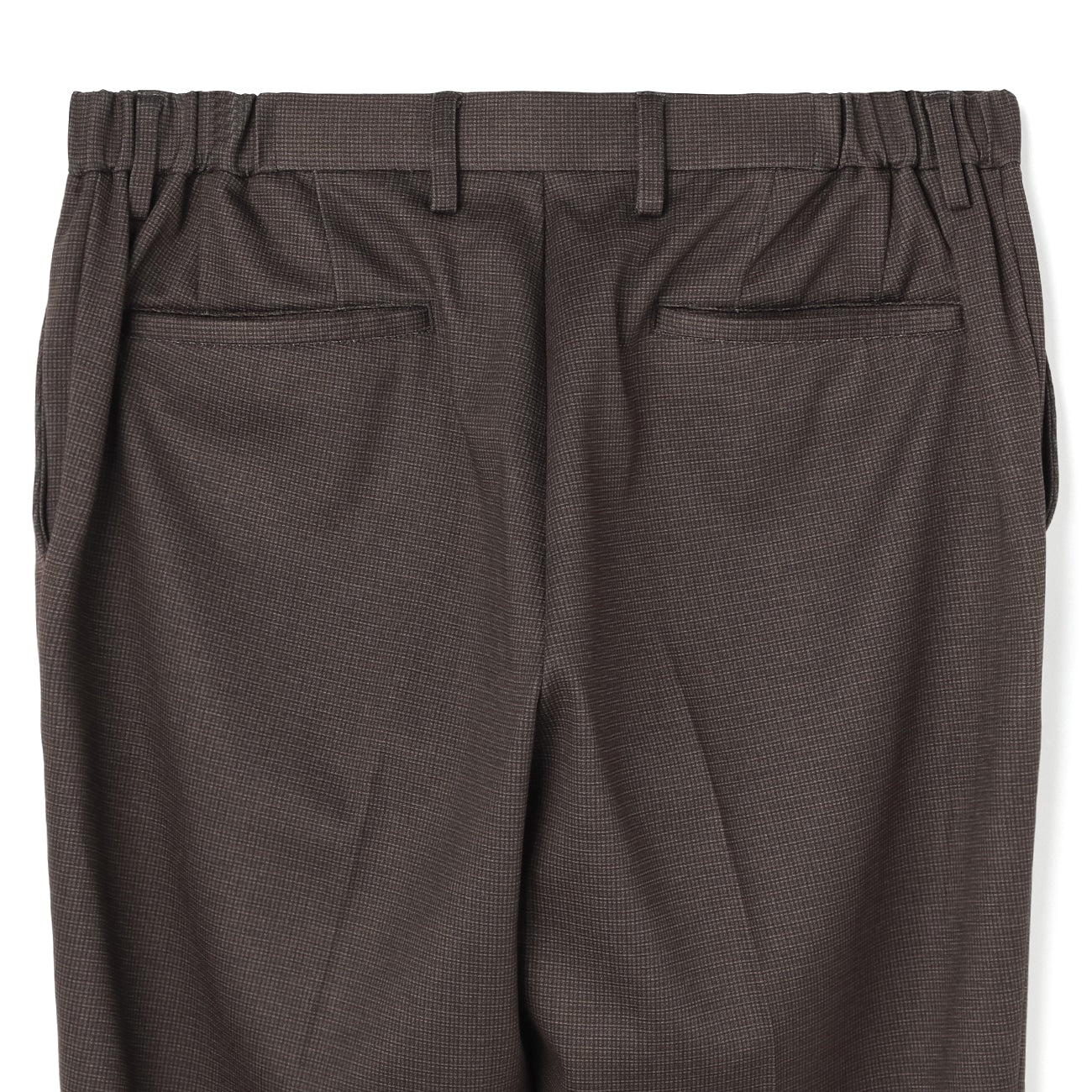 無摺西裝褲、褲腳已包邊、無內裏、腰側、後臀有口袋、腰部附調節繩。