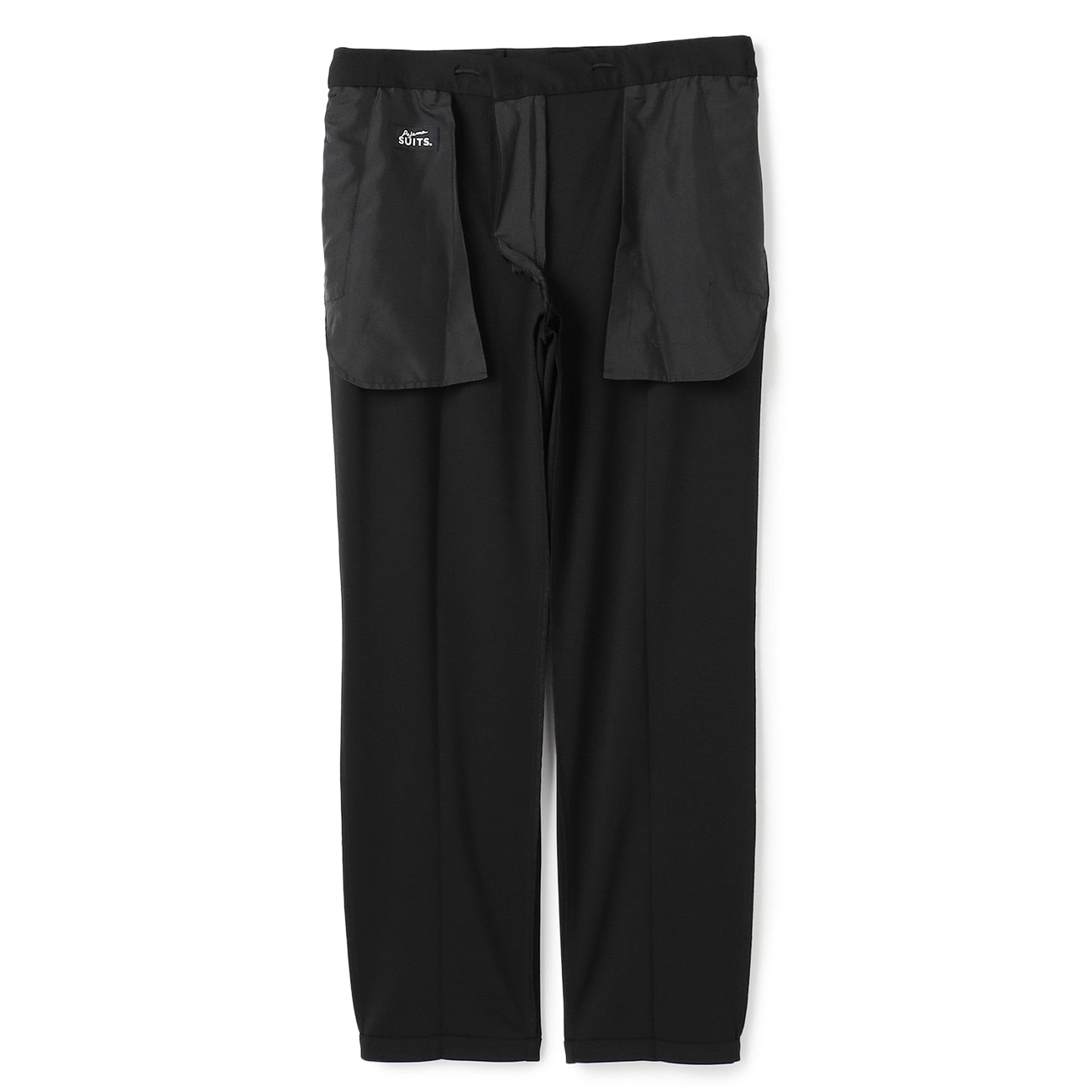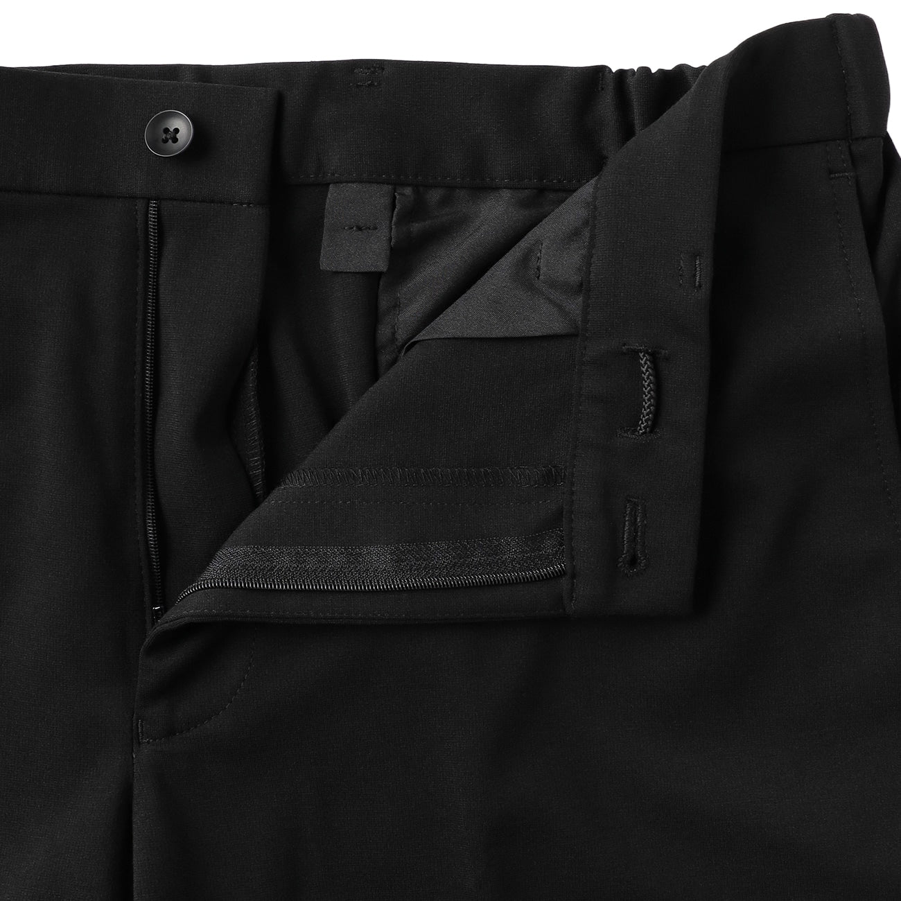 無摺西裝褲、褲腳已包邊、無內裏、腰側、後臀有口袋、腰部附調節繩。