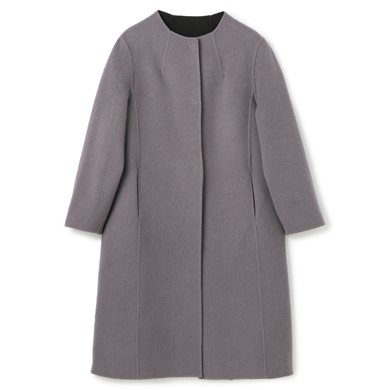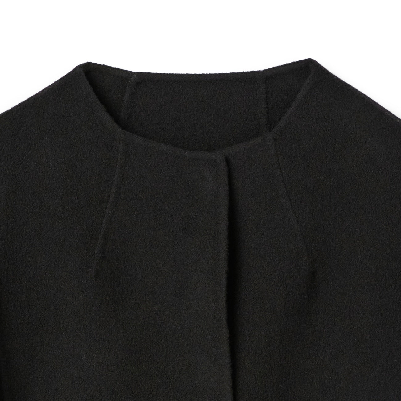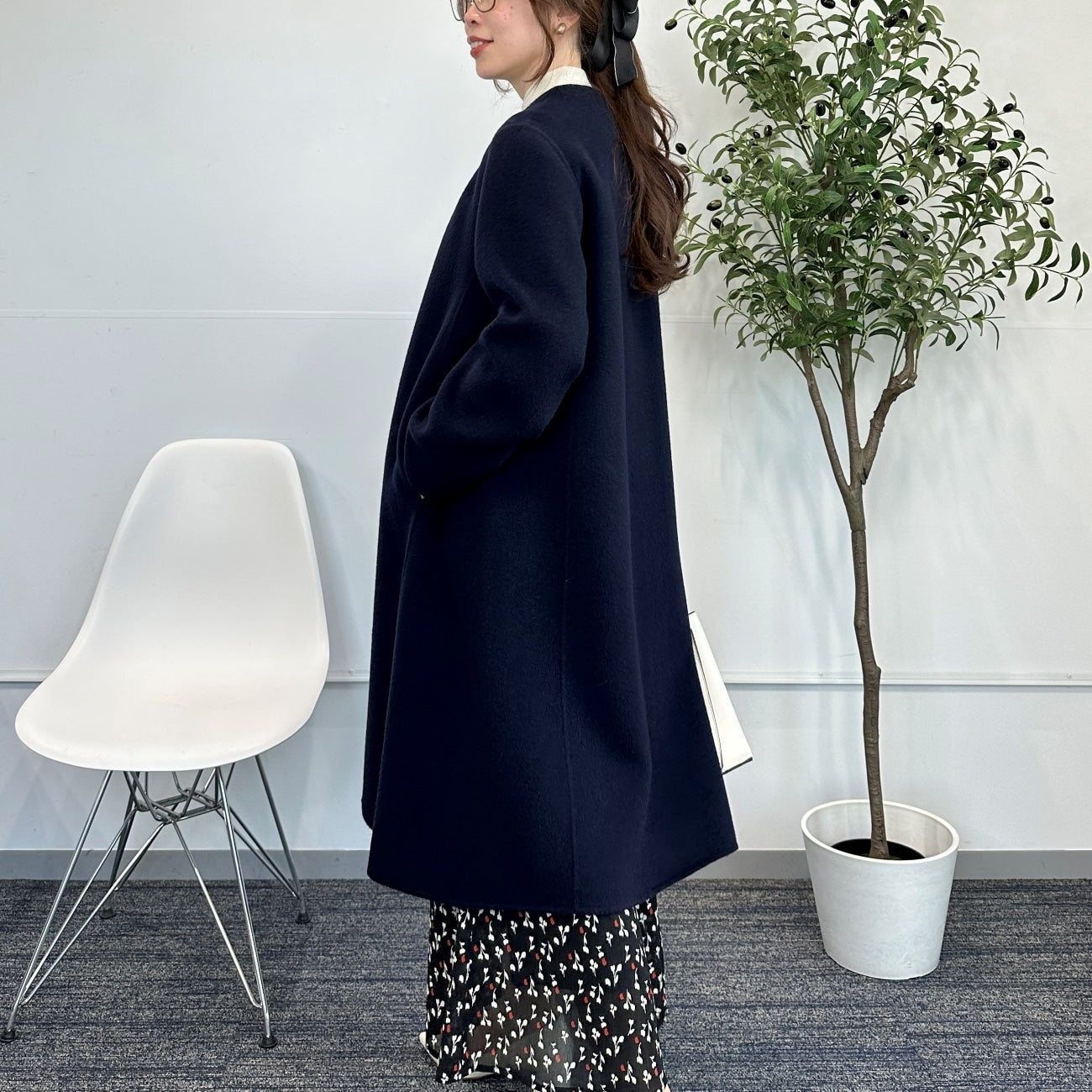 無領設計讓臉部線條乾淨明亮,也適合搭配圍巾、高領上衣。落肩與寬鬆剪裁具時尚感,亦能輕盈包覆身形,舒適穿出秋冬時尚。