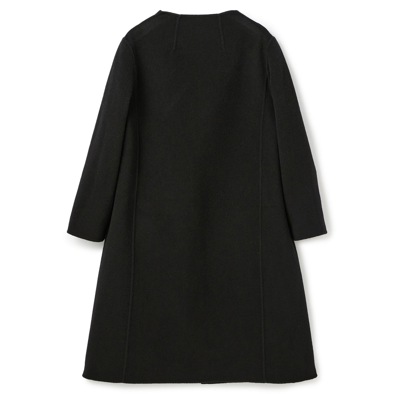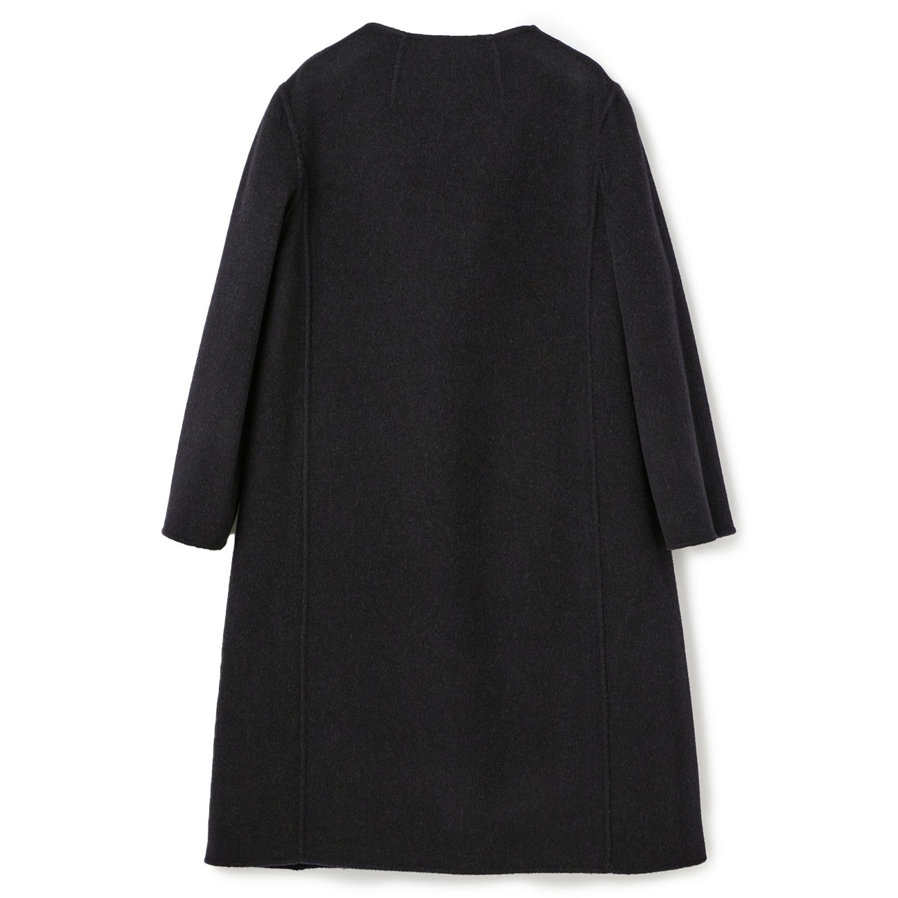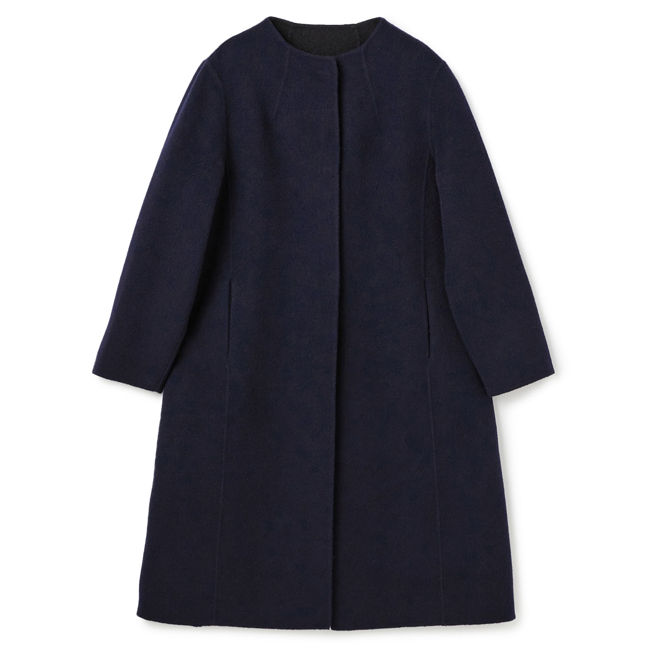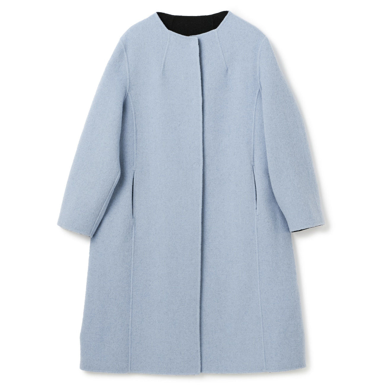 無領設計讓臉部線條乾淨明亮,也適合搭配圍巾、高領上衣。落肩與寬鬆剪裁具時尚感,亦能輕盈包覆身形,舒適穿出秋冬時尚。