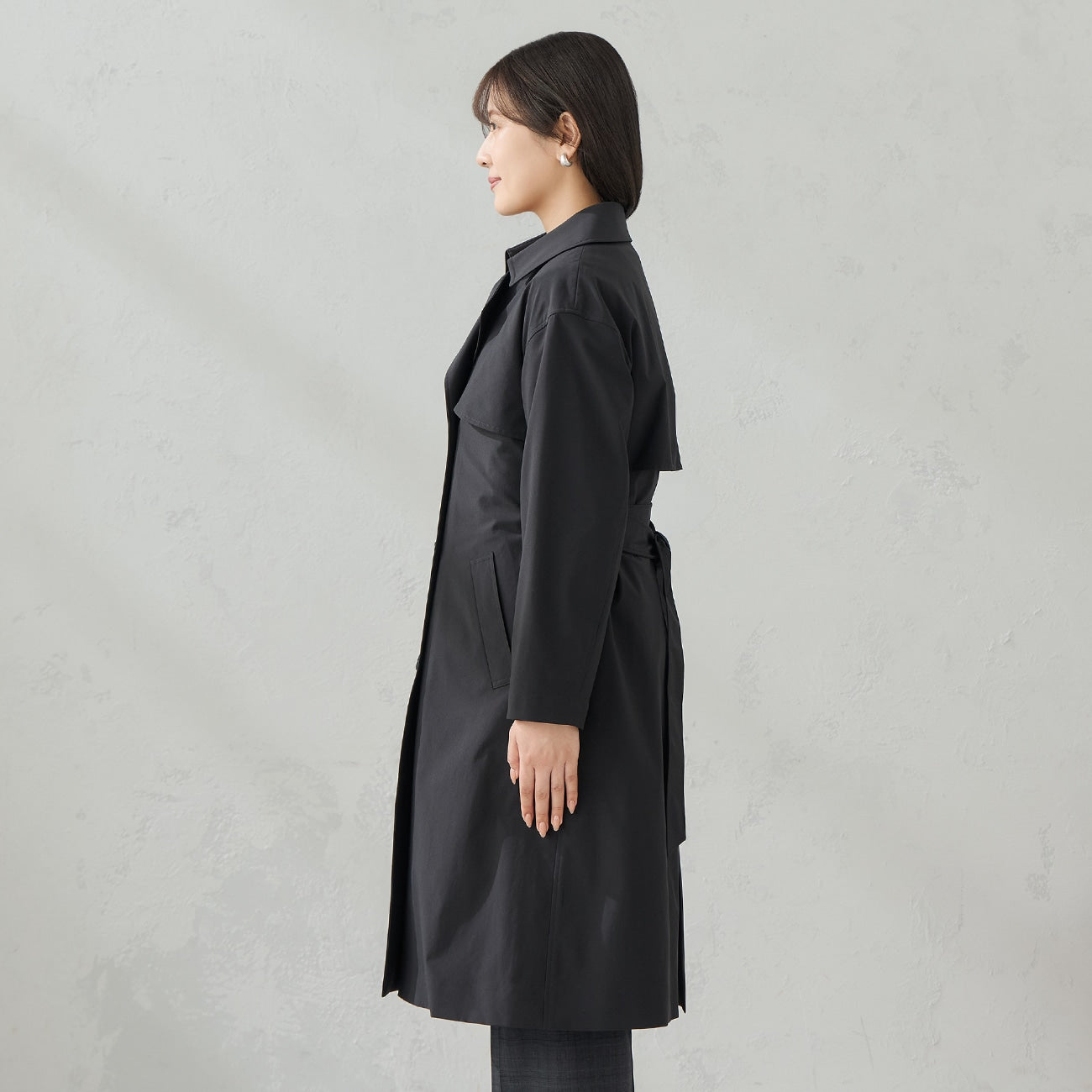 可拆式襯裡可長時間穿著。較長的長度適合職場與休閒風格,落肩設計則提供 ON/OFF 的多功能魅力。