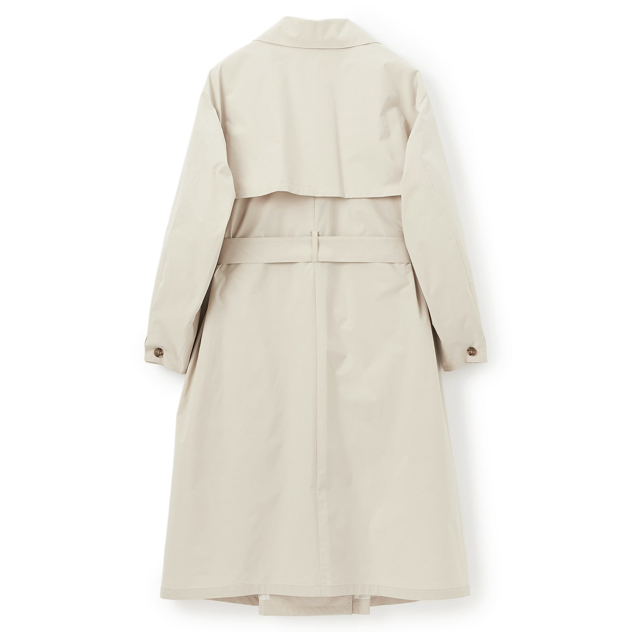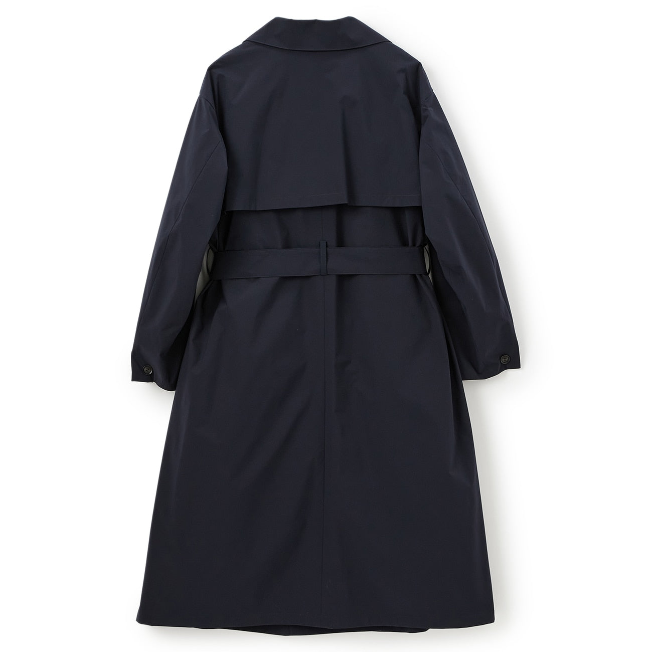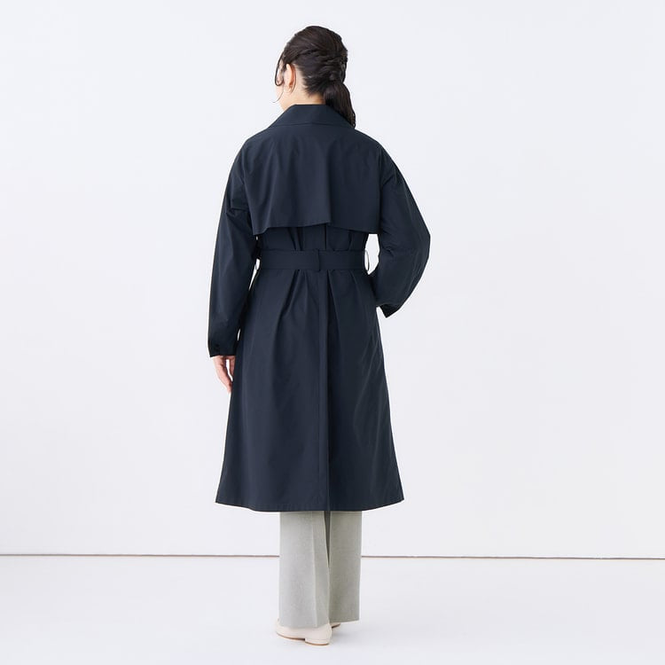 Featuring a generous use of fabric for an effortless look, this coat offers a relaxed silhouette that can be transformed into an elegant flared style by tightening the matching waist belt.
