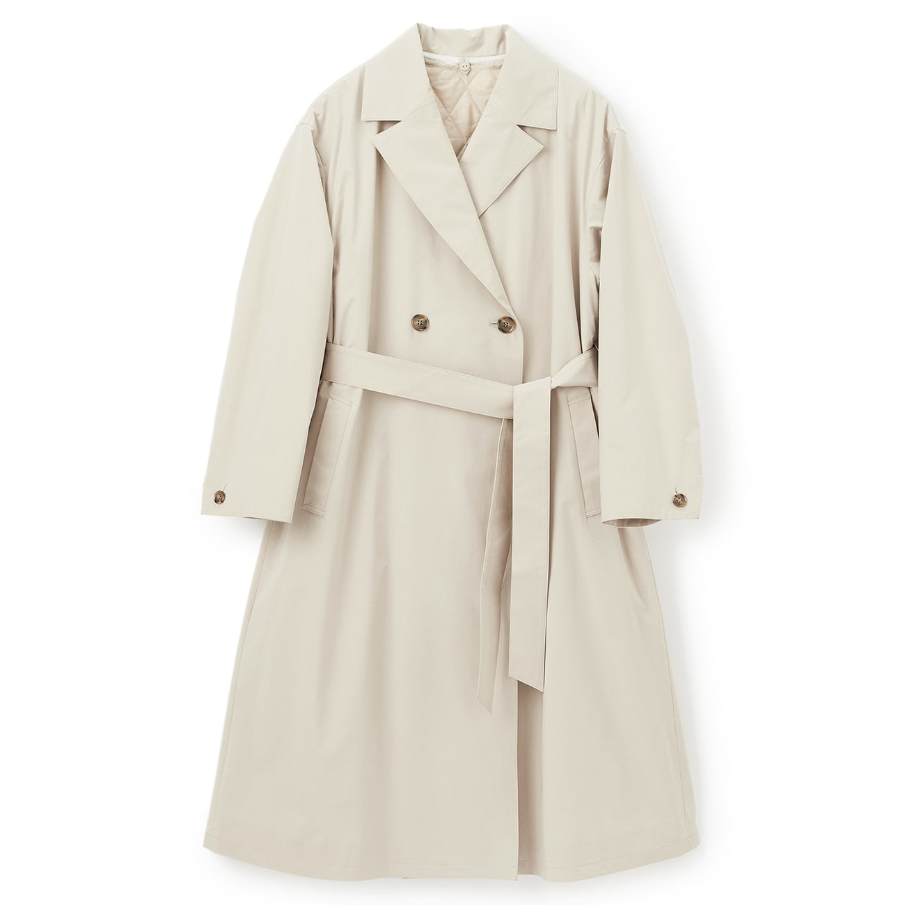 秋冬加上內裏作為保暖大衣,春秋單穿風衣輕盈舒適。可拆式內裏為絎縫背心設計,亦可單穿打造休閒層次。