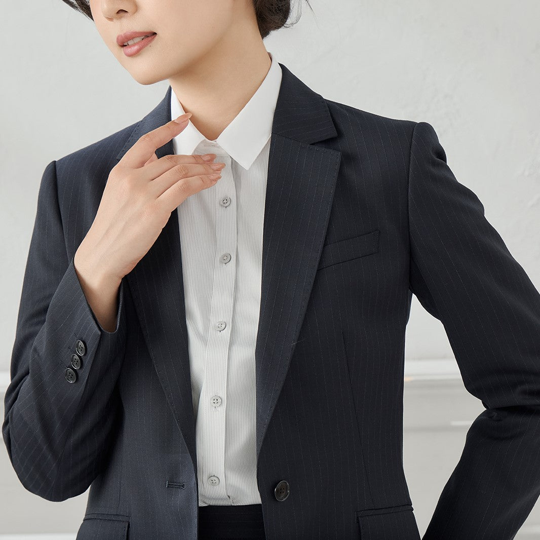 為經典款增添時尚細節,無背摺,整體輪廓更俐落。胸前有隱藏式鈕扣,不擔心走光。