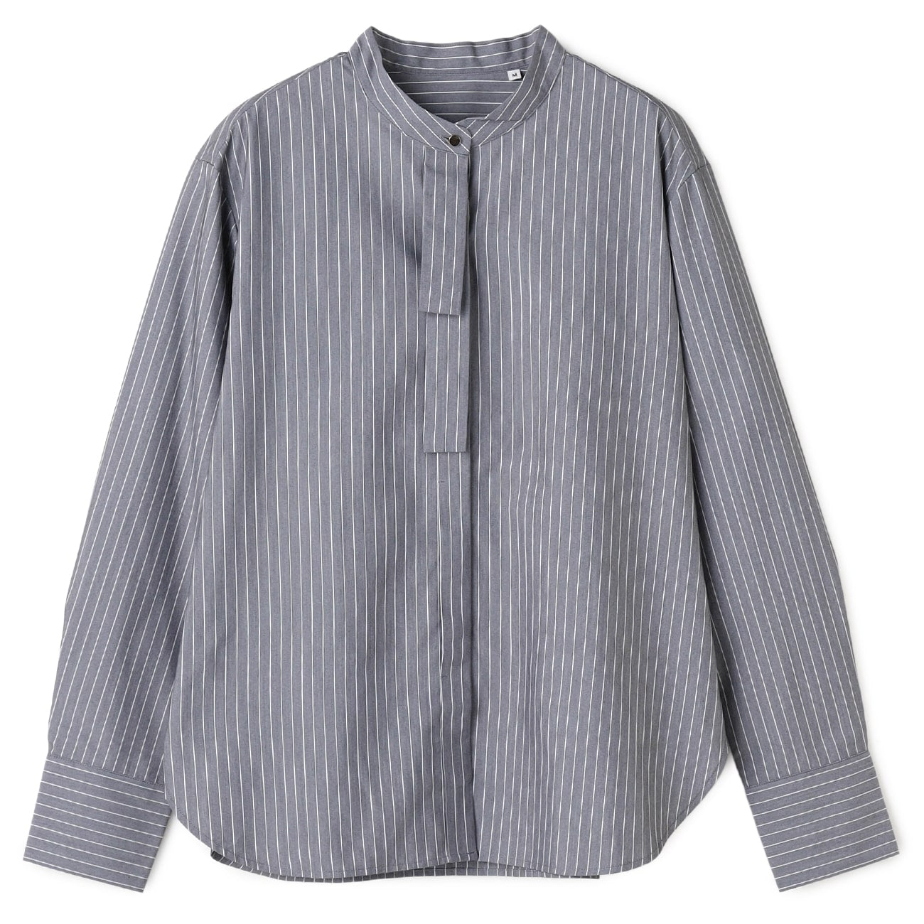 A refined band collar blouse that creates a sleek, elongating silhouette.