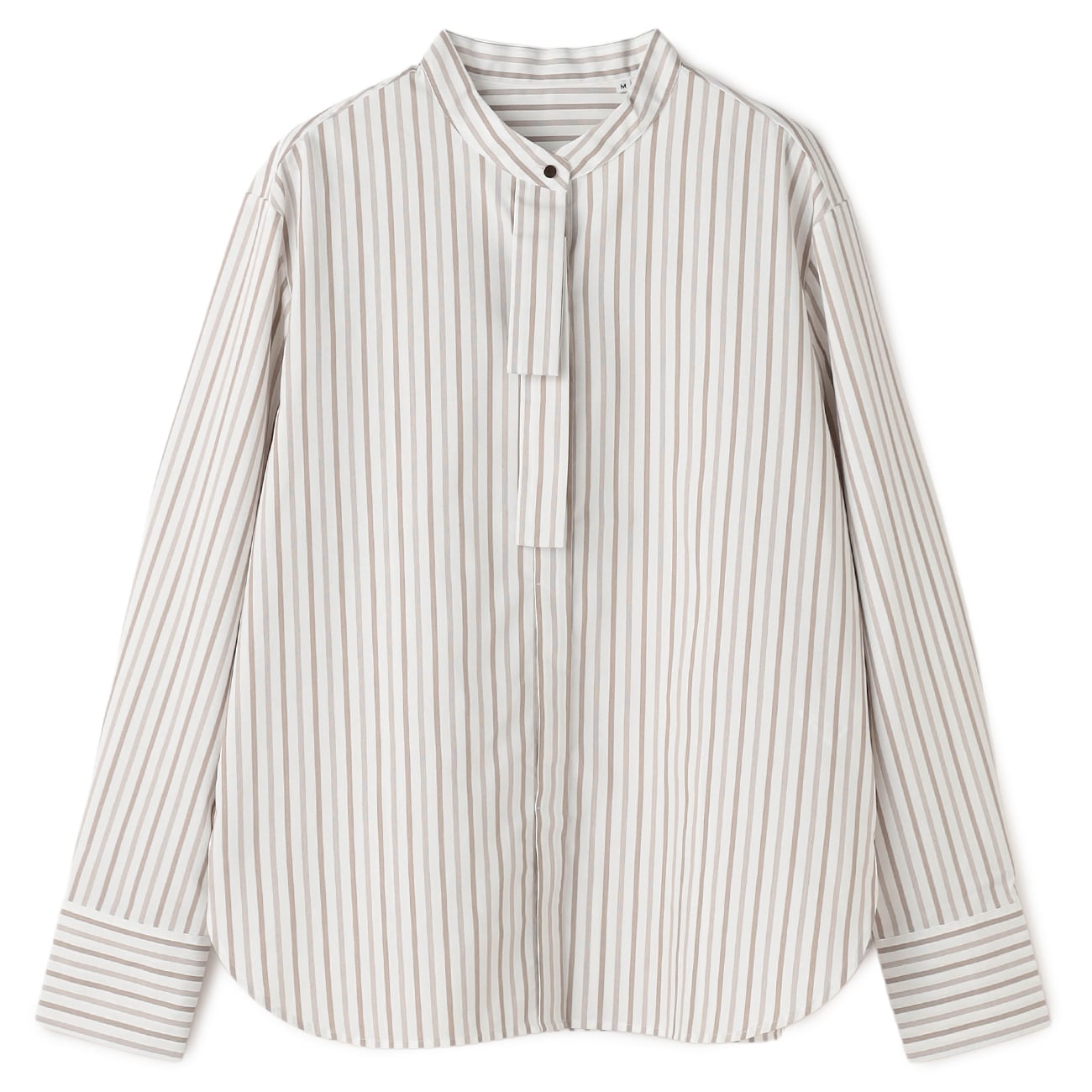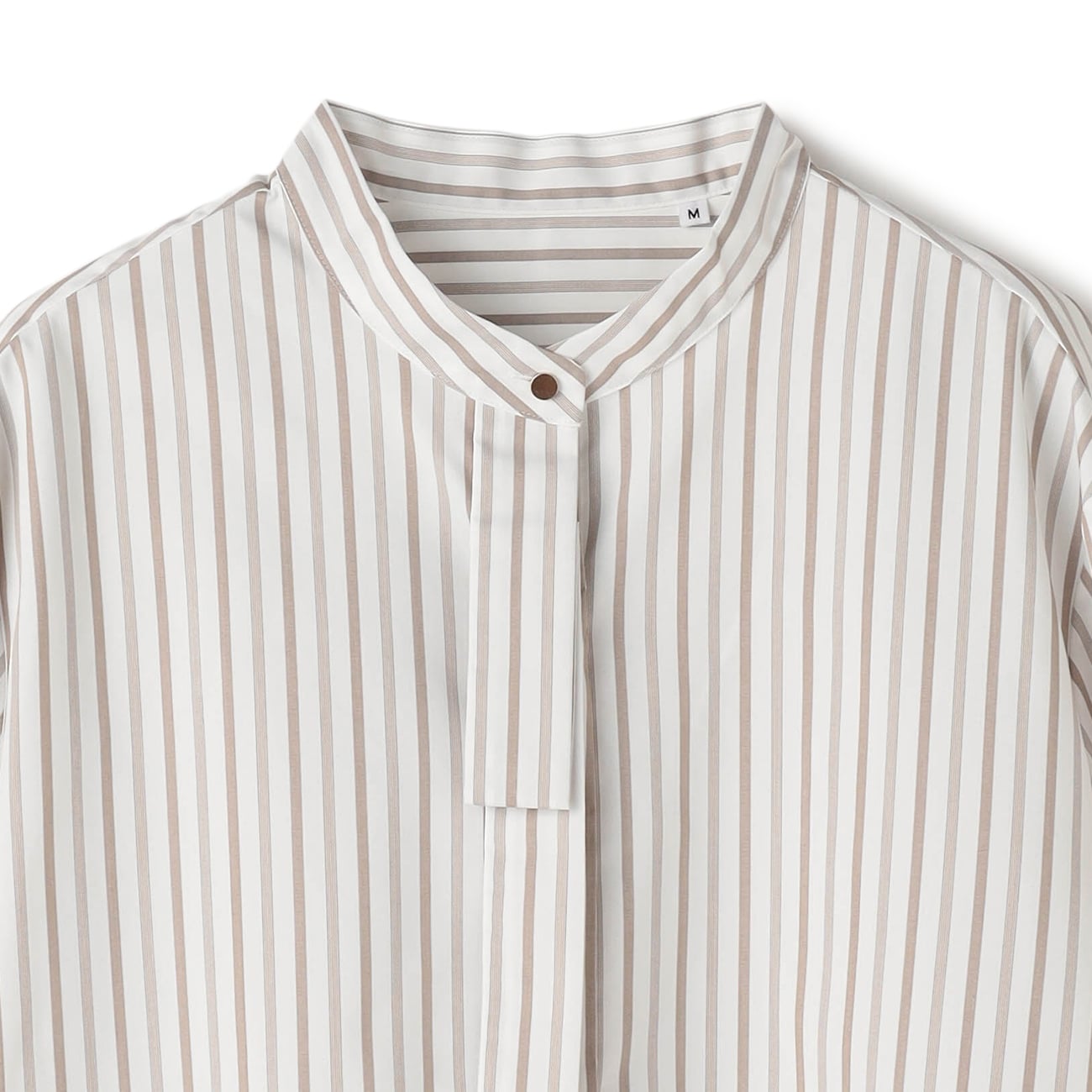 轻巧立领与金属扣呈现细腻质感,领口小领带展现俐落正式,商务、休闲场合都好搭。衣长设计恰到好处,露出下摆也显得俐落有型。