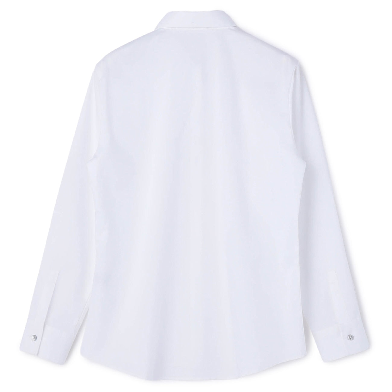 A clean white regular-collar shirt with a detachable striped ribbon that lets you change the look to suit your style or the occasion. With the ribbon, it adds a soft, elegant touch that brightens your look. Without the ribbon, it becomes a neat, classic shirt ideal for business, formal settings, or polished everyday wear.
