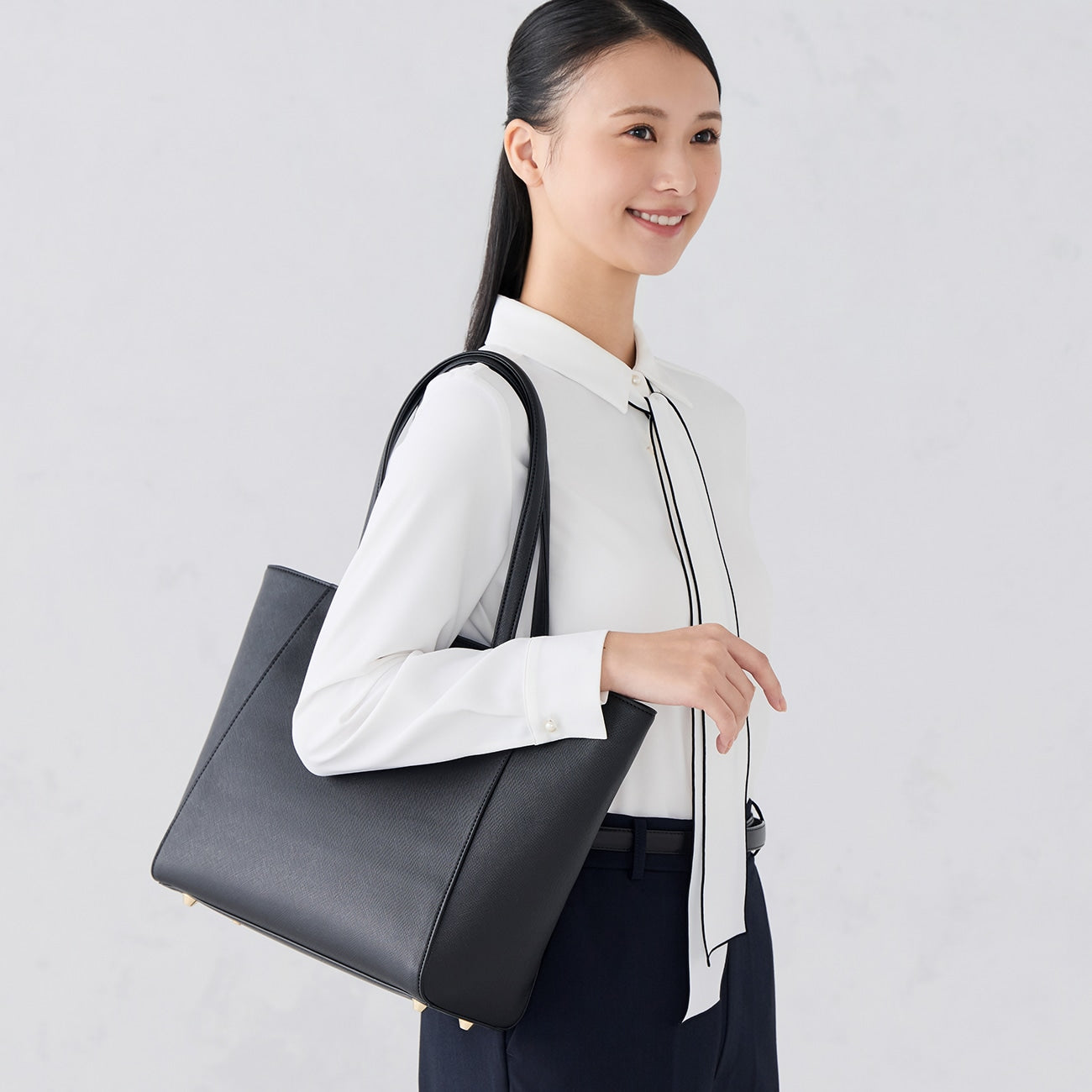 Covered 3way tote bag that changes impression depending on mood and scene