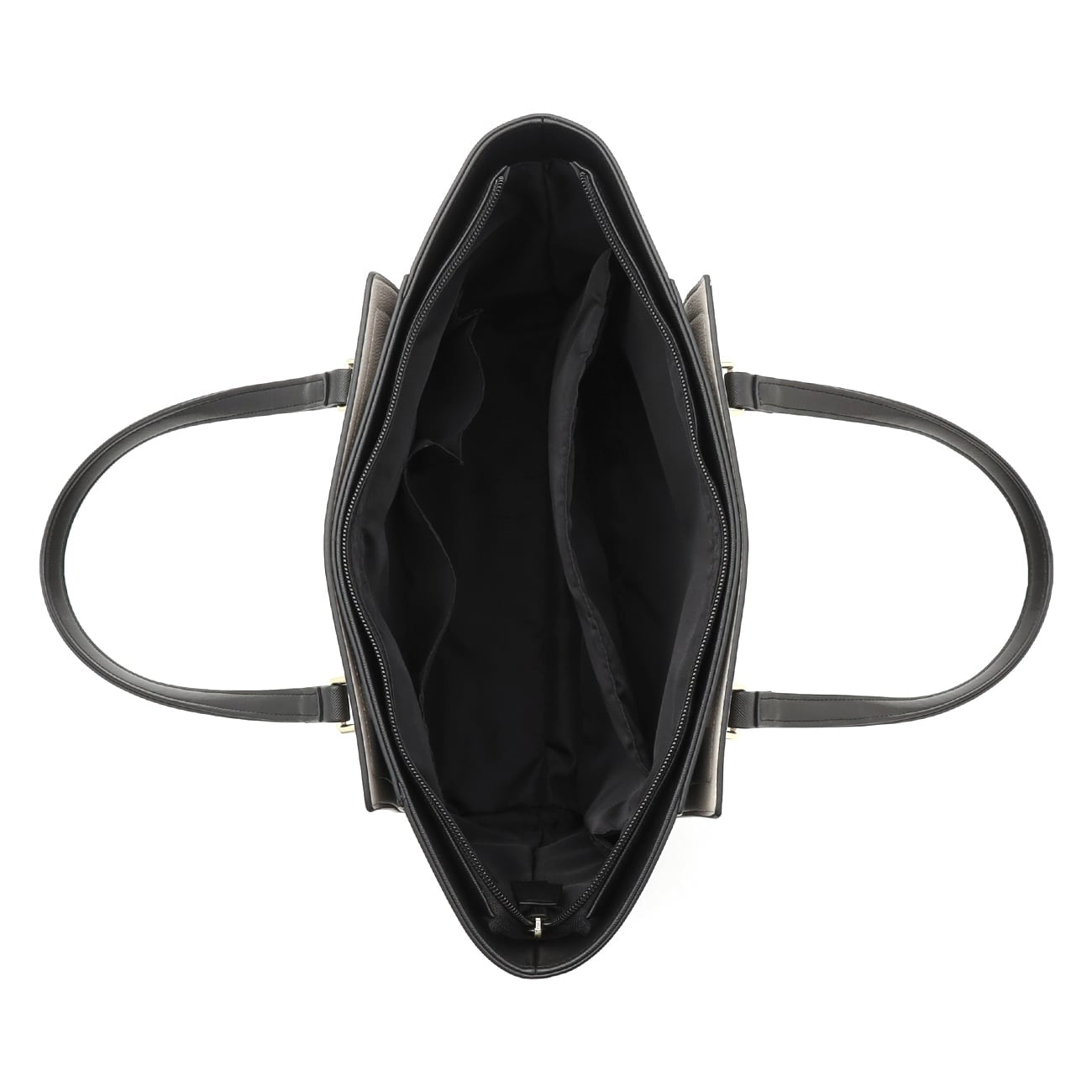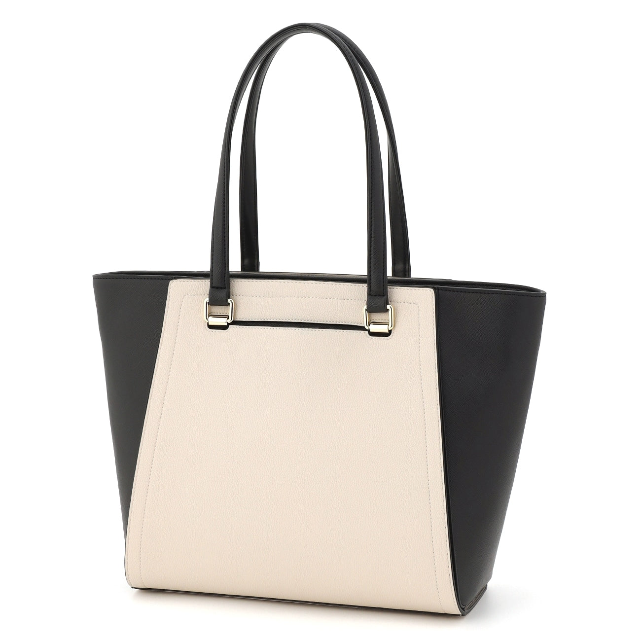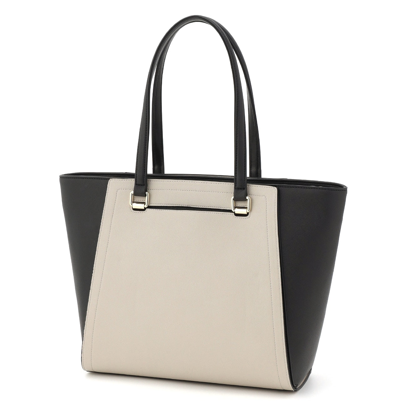 Body is basic black, with detachable cover of off-white and beige. By removing the cover, it becomes a neat black plain tote that supports ceremonial occasions and business scenes.
