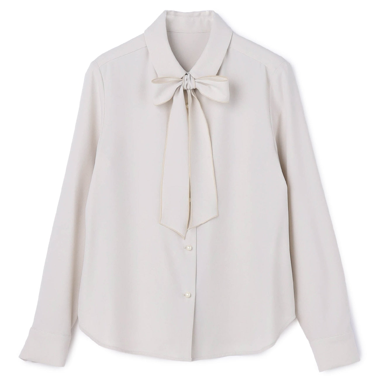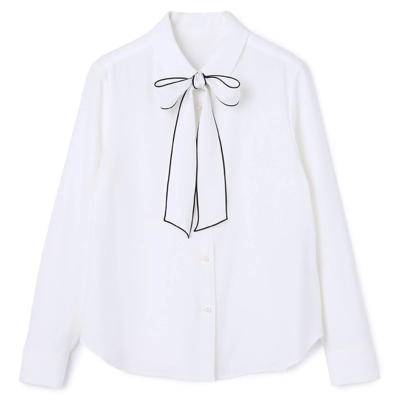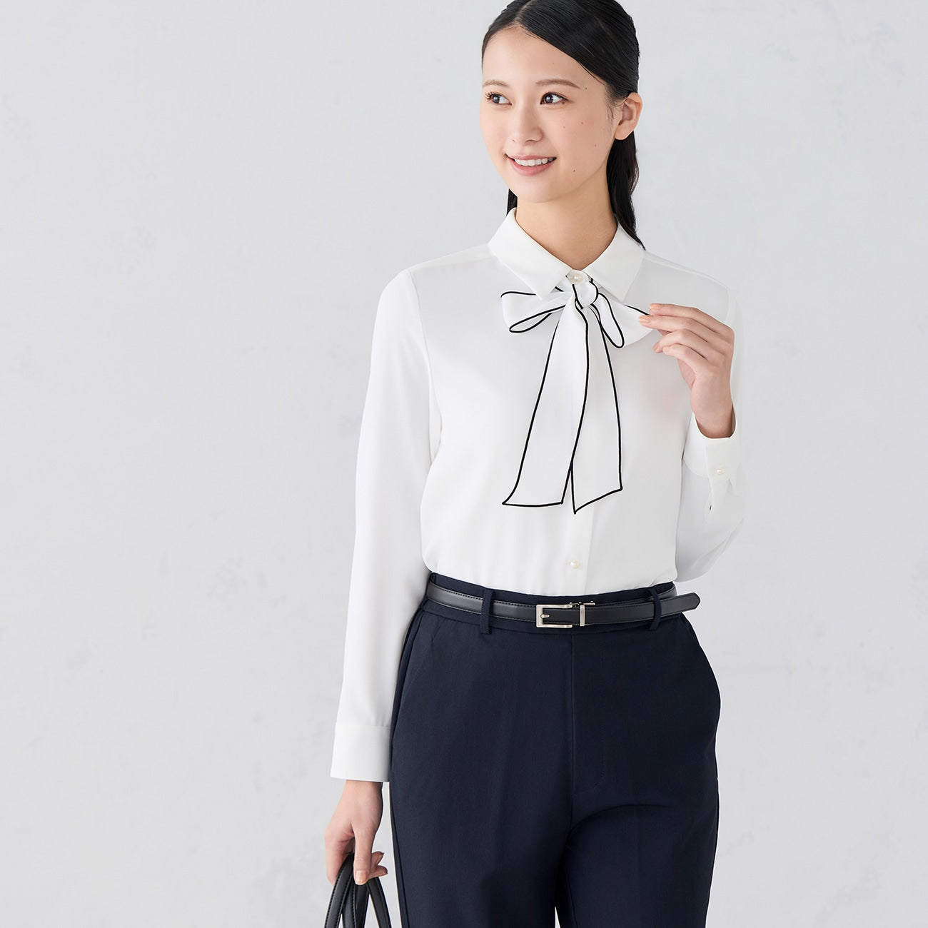 Detachable bow-tie is 2way specification that can be easily changed with button. Cool tie style is perfect for office wear. Gorgeous ribbon knot makes it gorgeous at once and gives cute impression. Simple regular collar blouse if you remove all bow-ties.