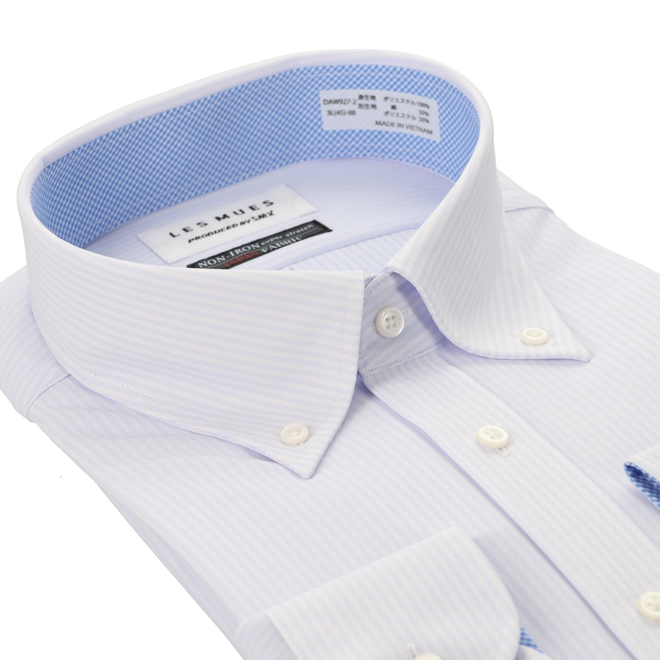 SizeMax免燙超彈力鈕扣領襯衫 日本製素材 藍