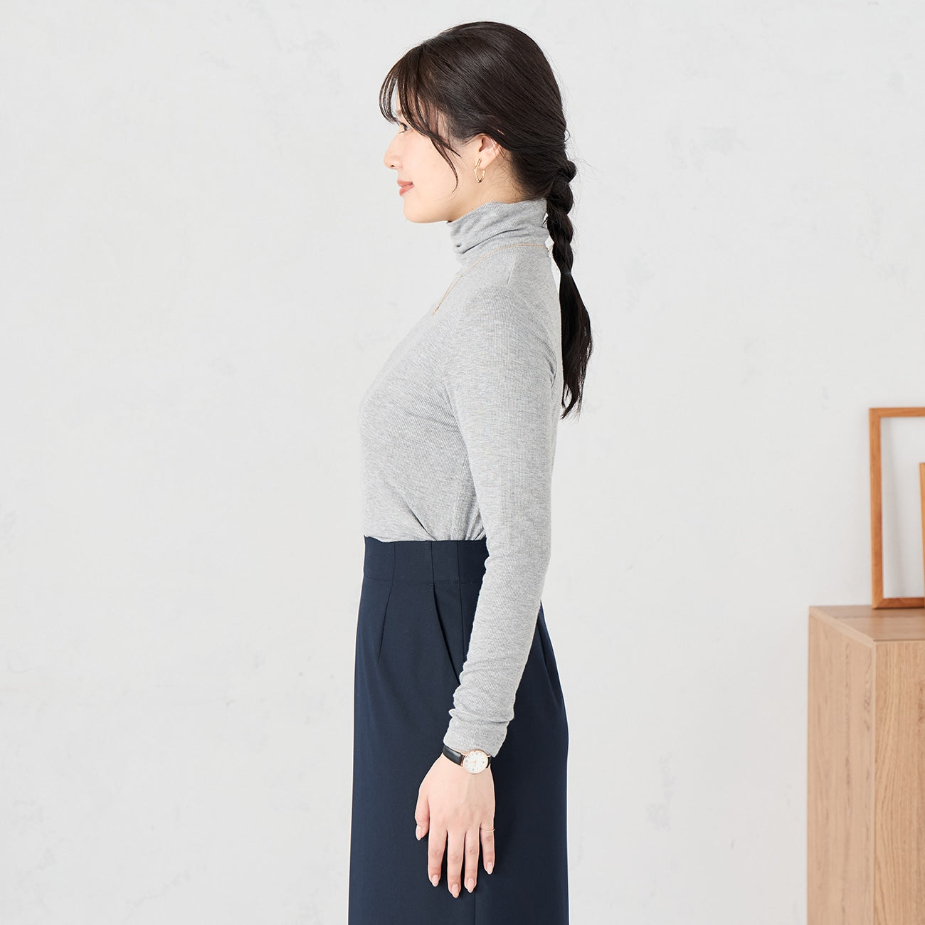 採用平滑羅紋針織,提供輕盈的觸感和無壓力的立體輪廓。也非常適合在過渡季節中作為內搭。