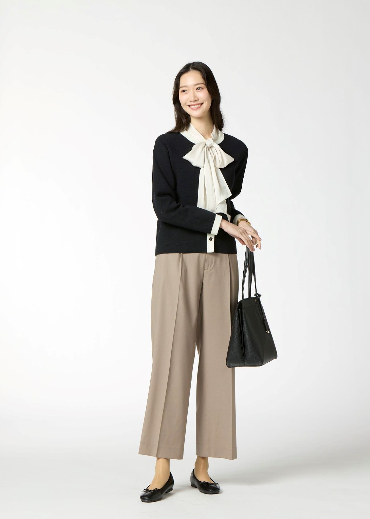 采用丝质混纺面料,柔软舒适,带有些许光泽。配色设计与金属扣增添细致亮点。