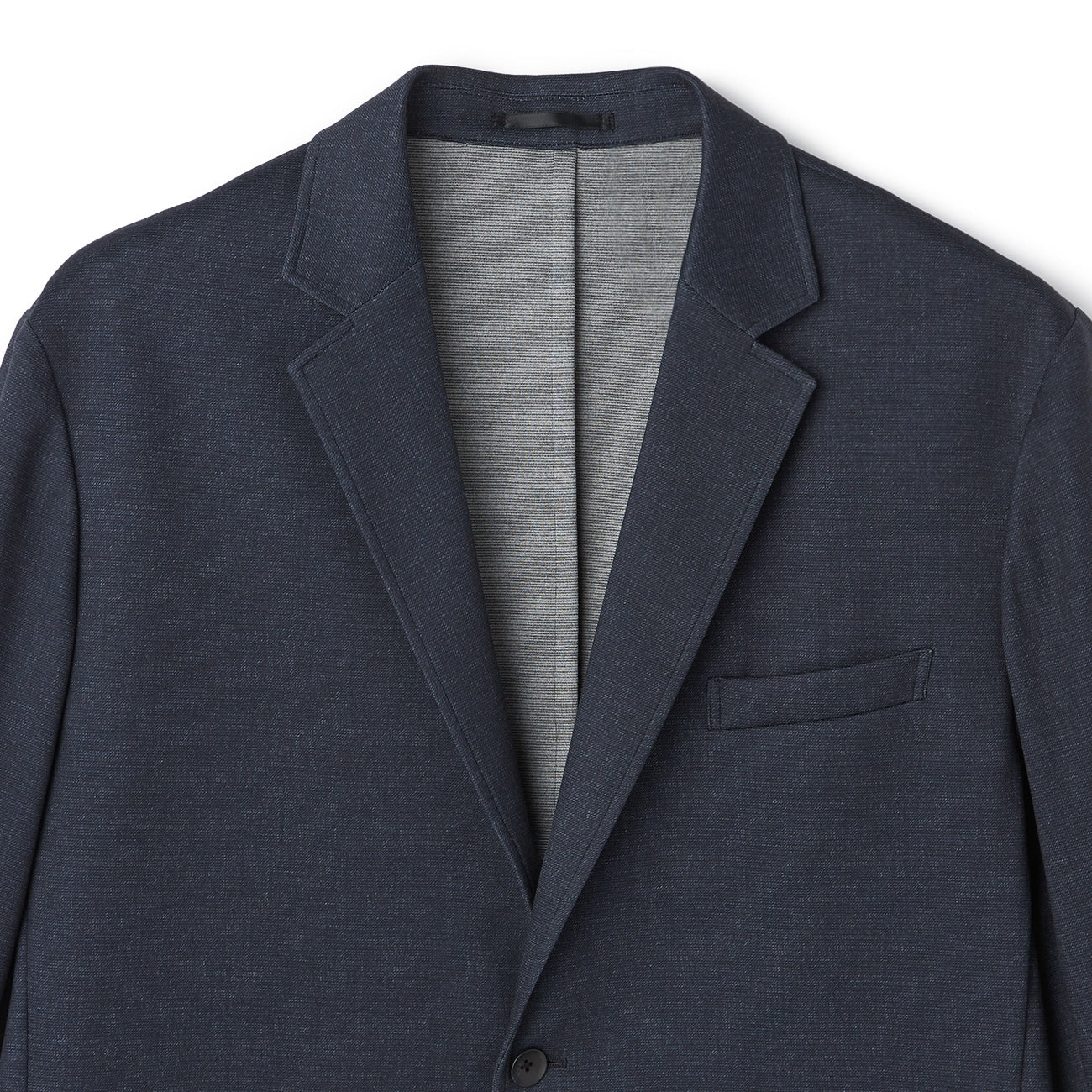針織素材輕量、彈性佳、多向角度皆能伸縮,穿著舒適。表面印紋則為外套帶來更多細節,展現精緻品味。