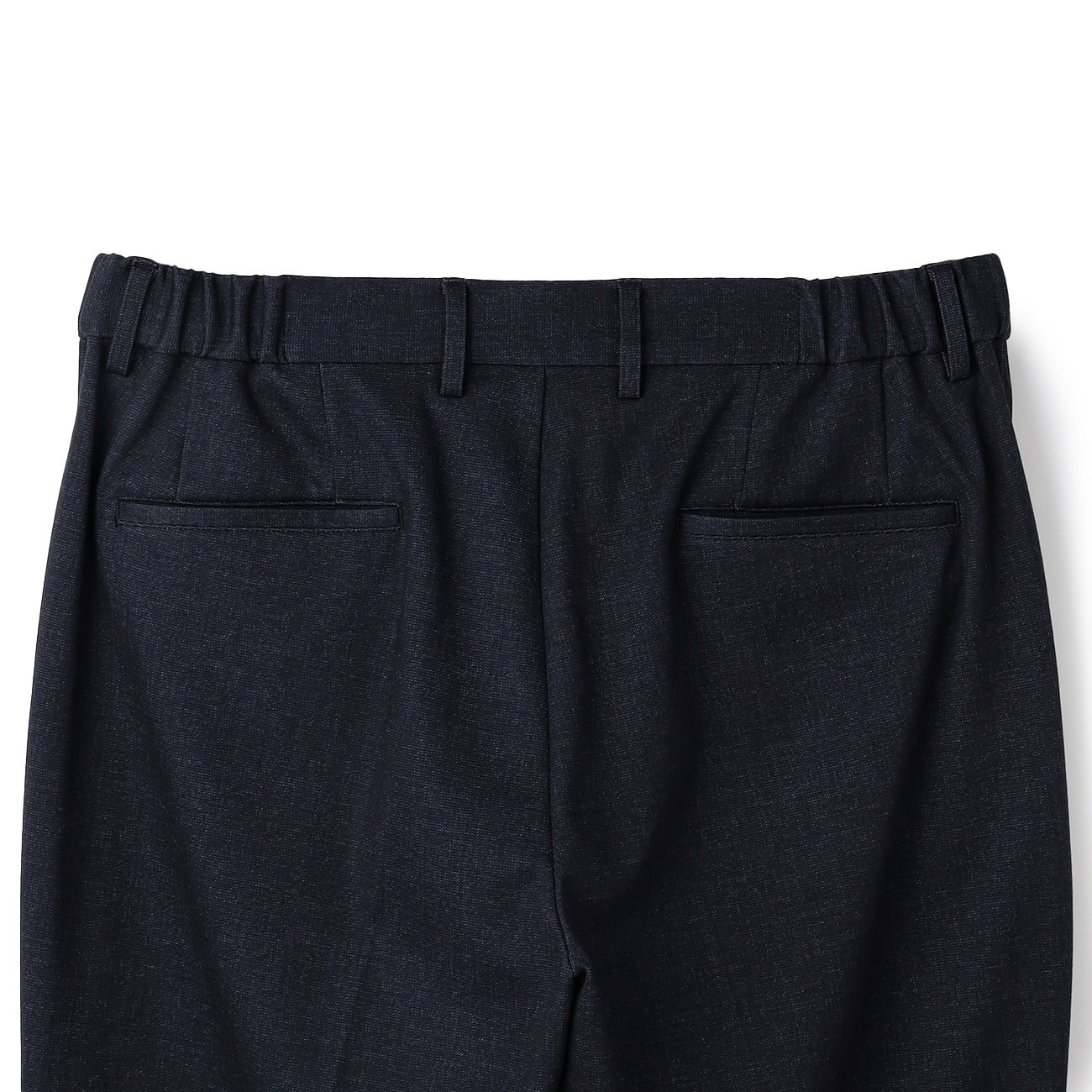 無摺西裝褲、褲腳已包邊、無內裏、腰側、後臀有口袋、腰部附調節繩。