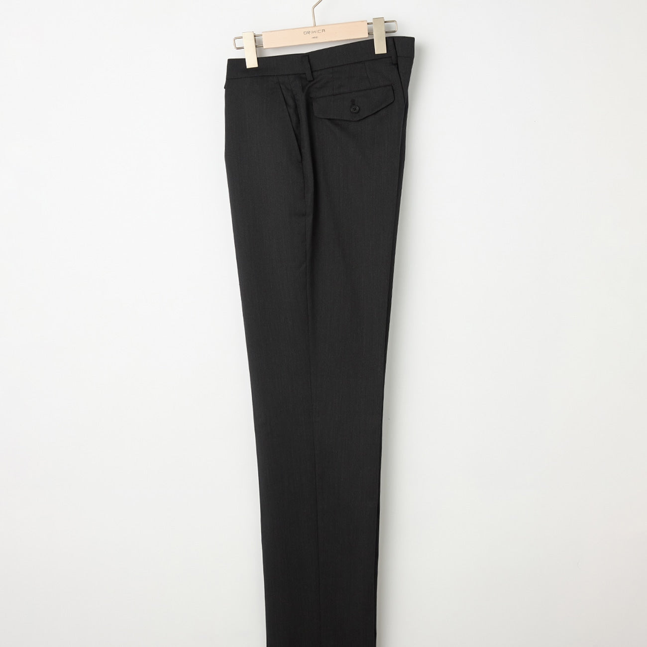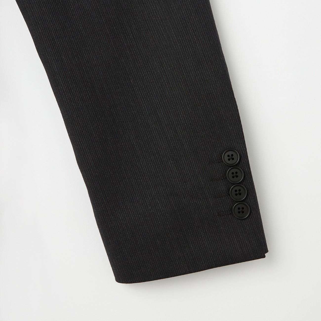・西裝外套:2顆鈕扣、背開中叉、袖口假扣眼、部分內裏。西裝褲:無摺