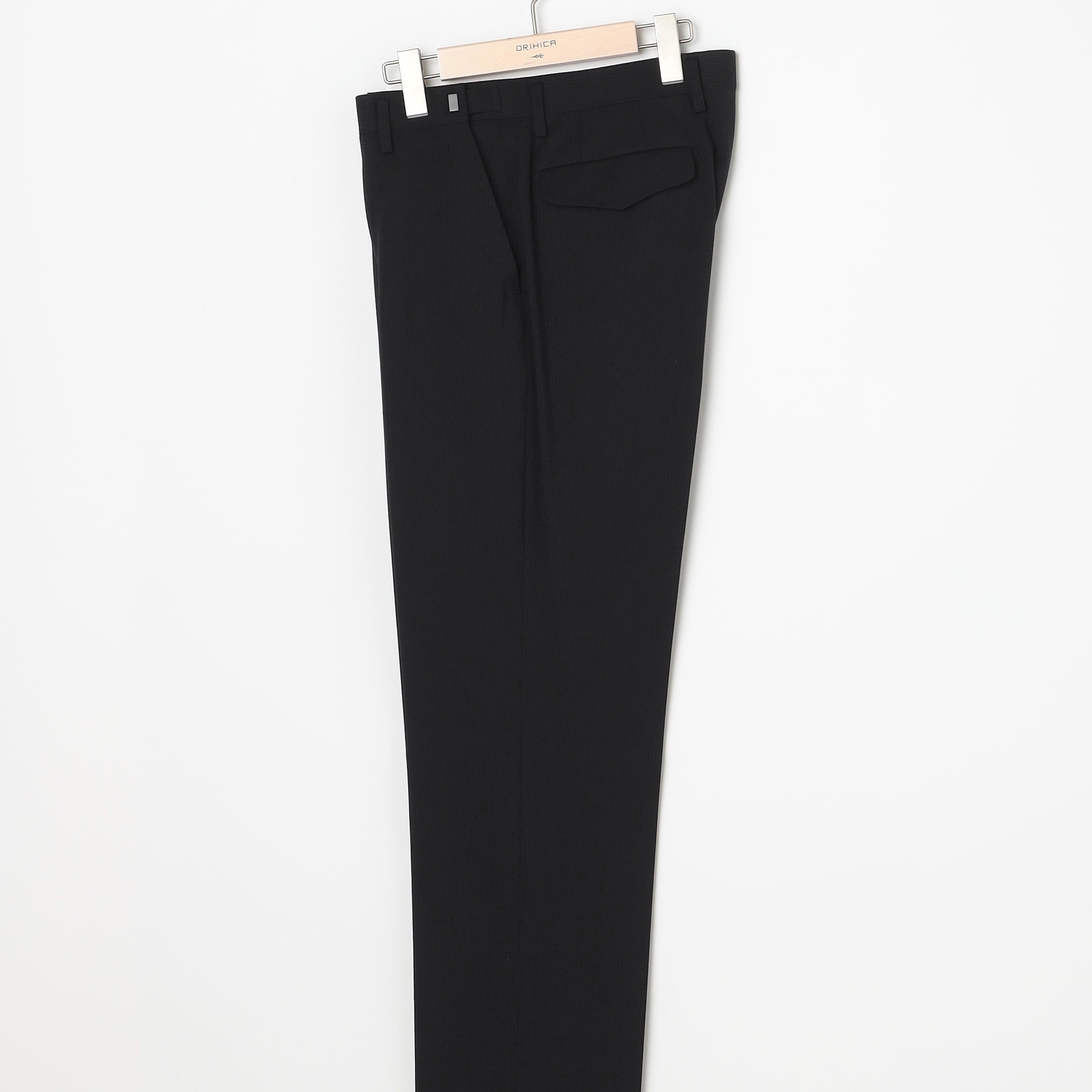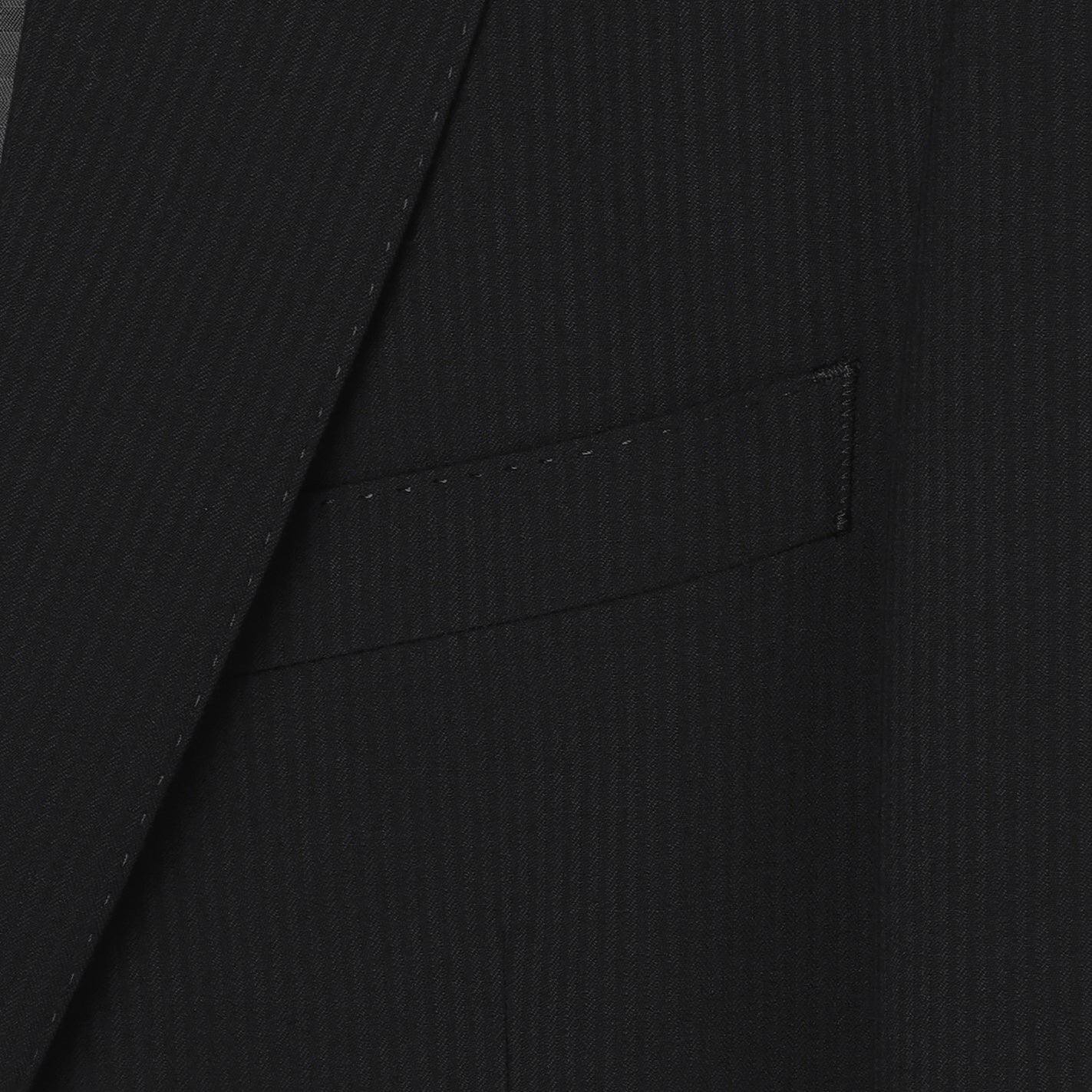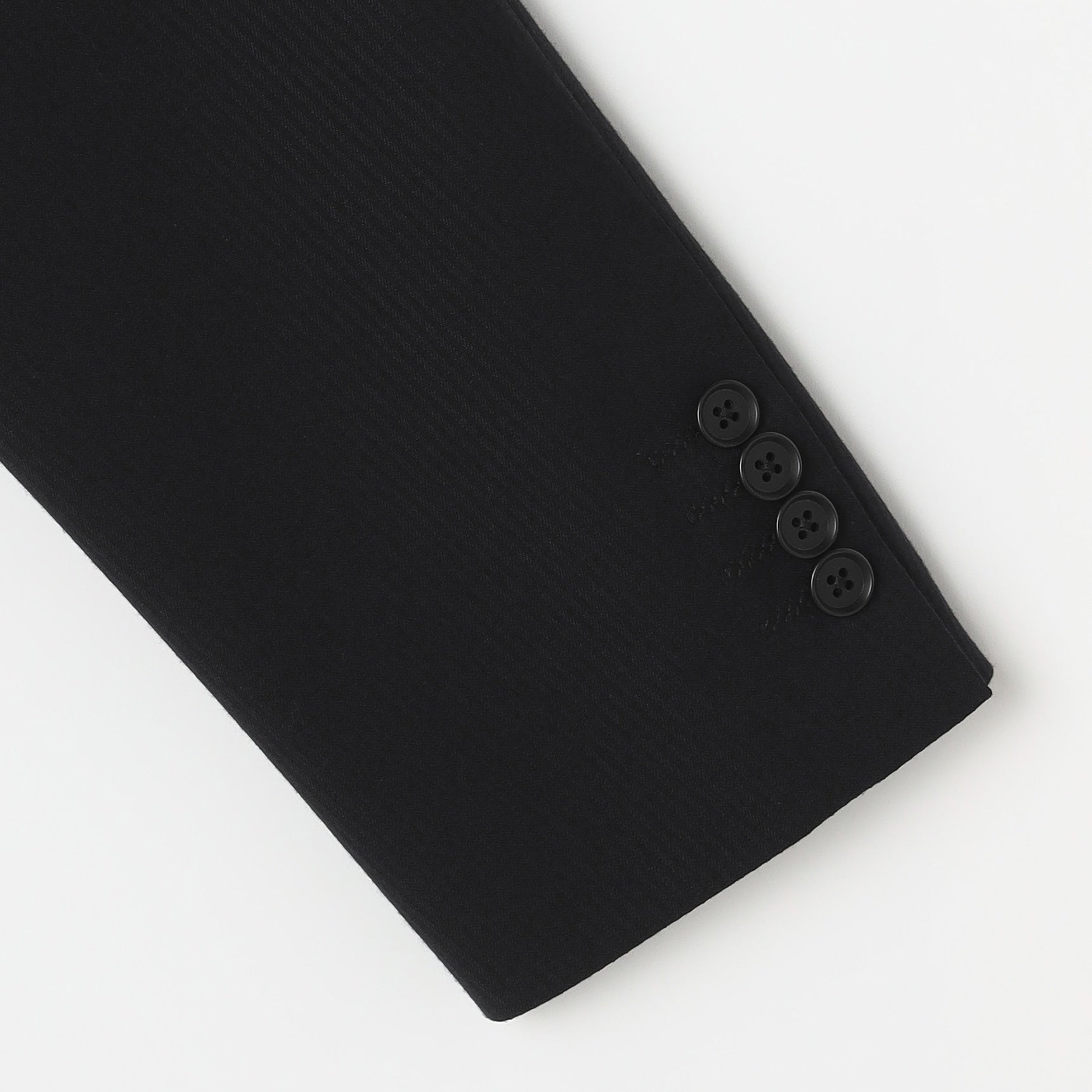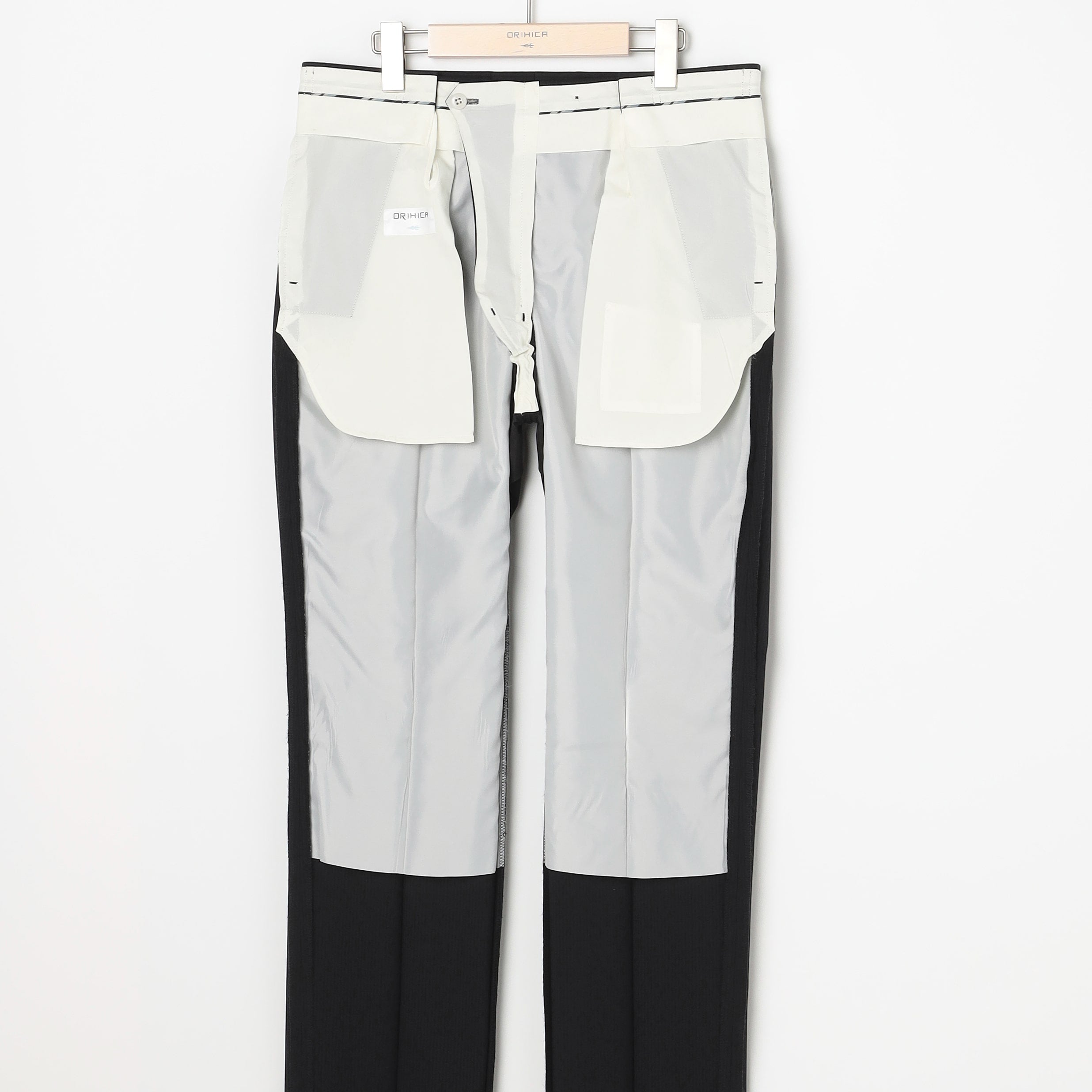 ・西裝外套:2顆鈕扣、背開中叉、袖口假扣眼、半內裏。西裝褲:無摺。