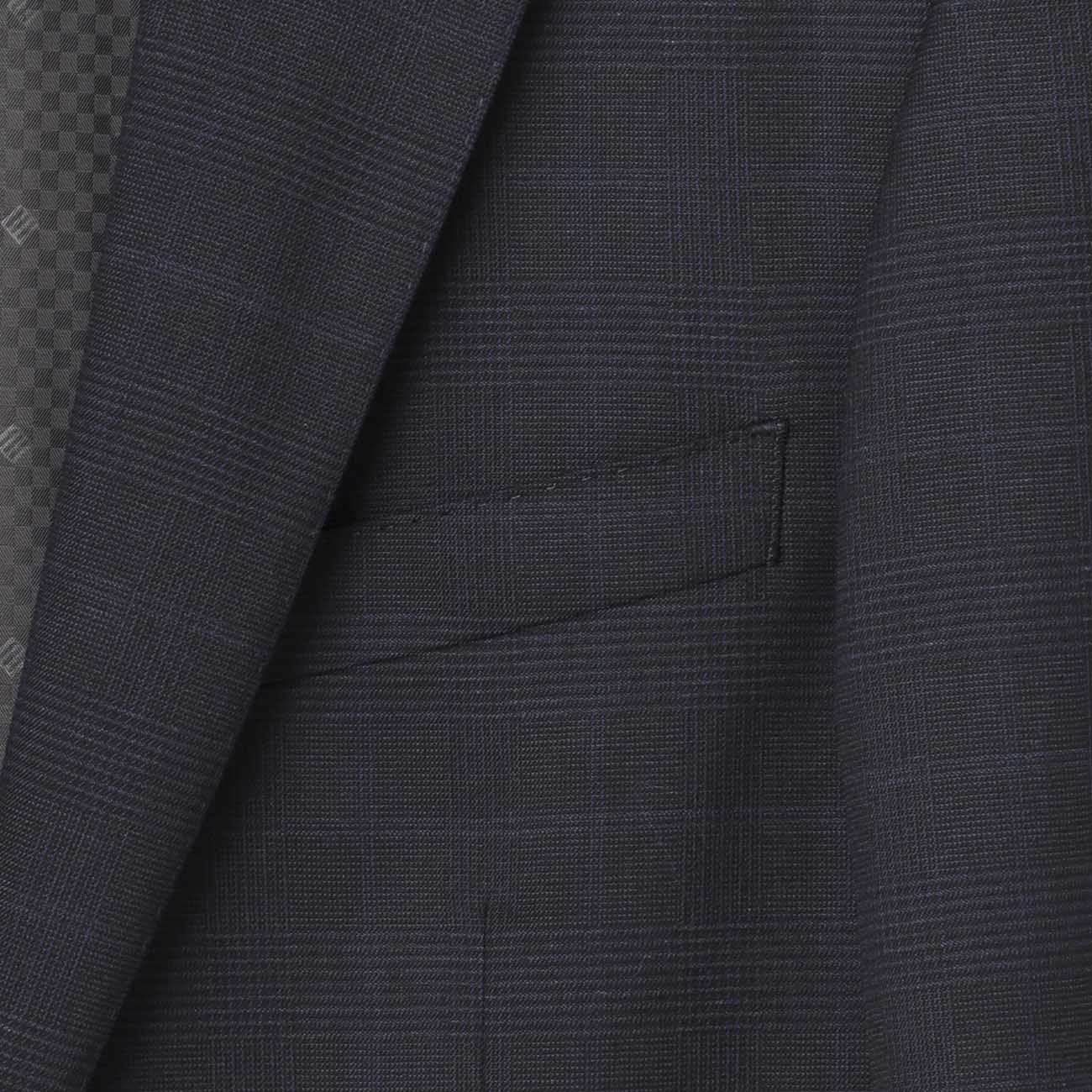 - 2-button jacket with center vent, decorative sleeve buttons, half-lining, and flat front pants.