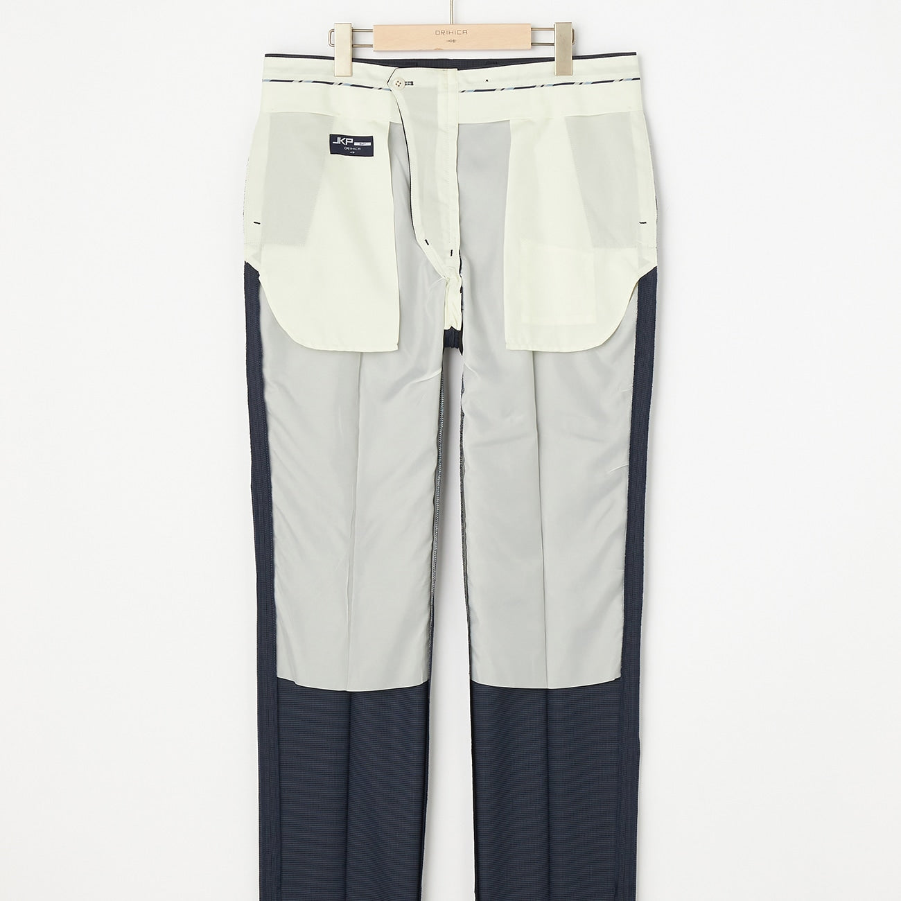 -背開中叉、裝飾袖鈕、半裡襯、平襠褲。