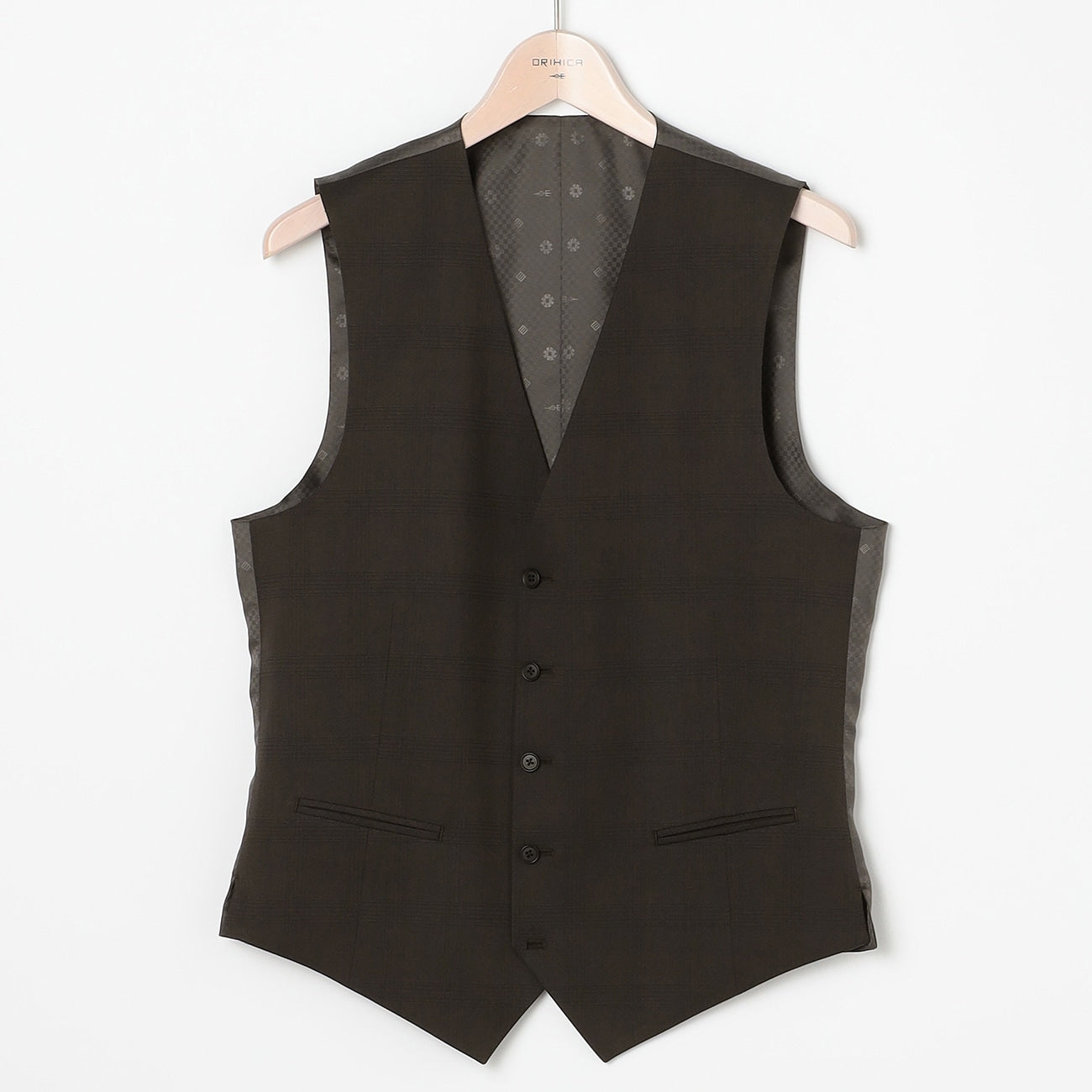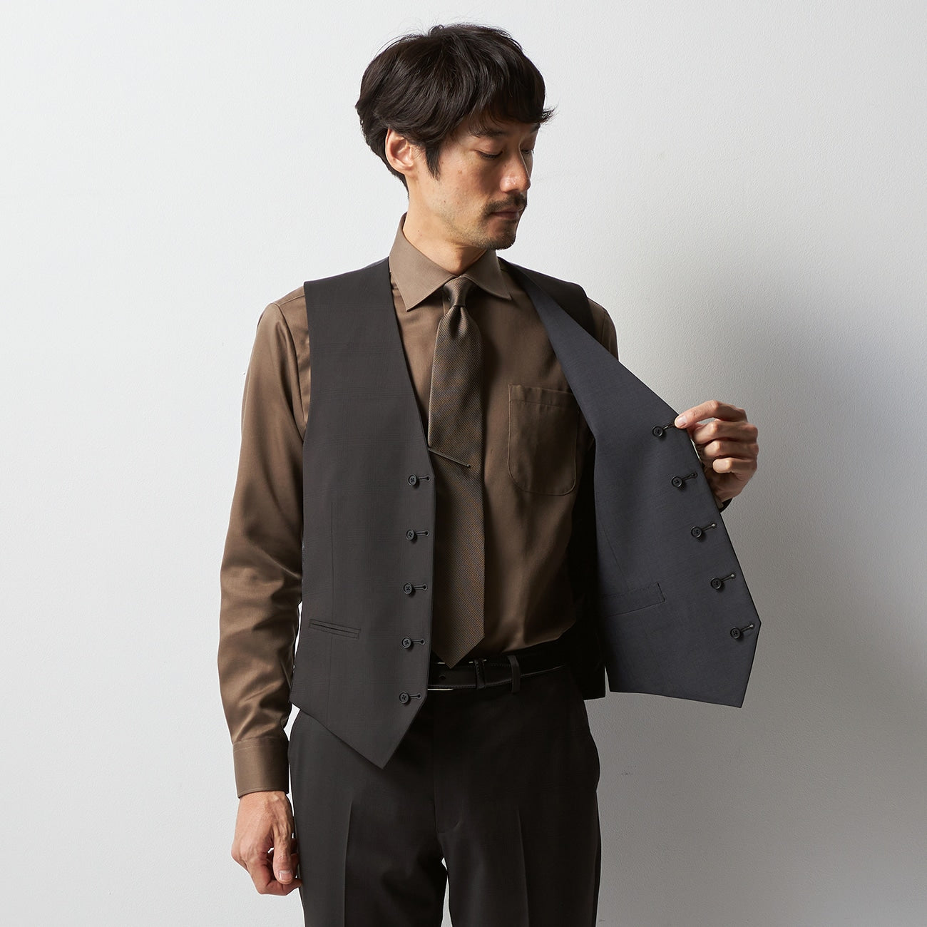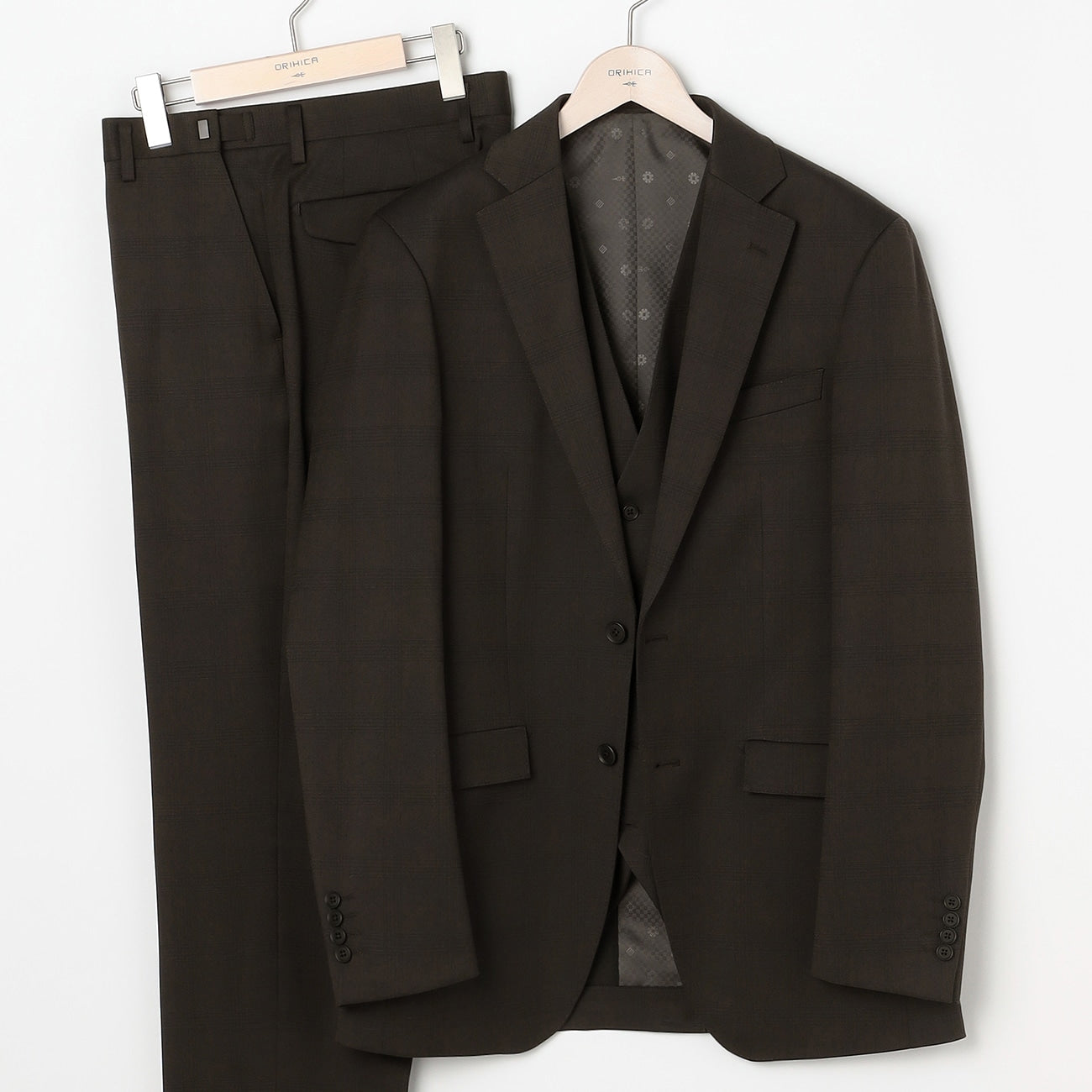 羊毛混紡三件式格紋西裝 棕