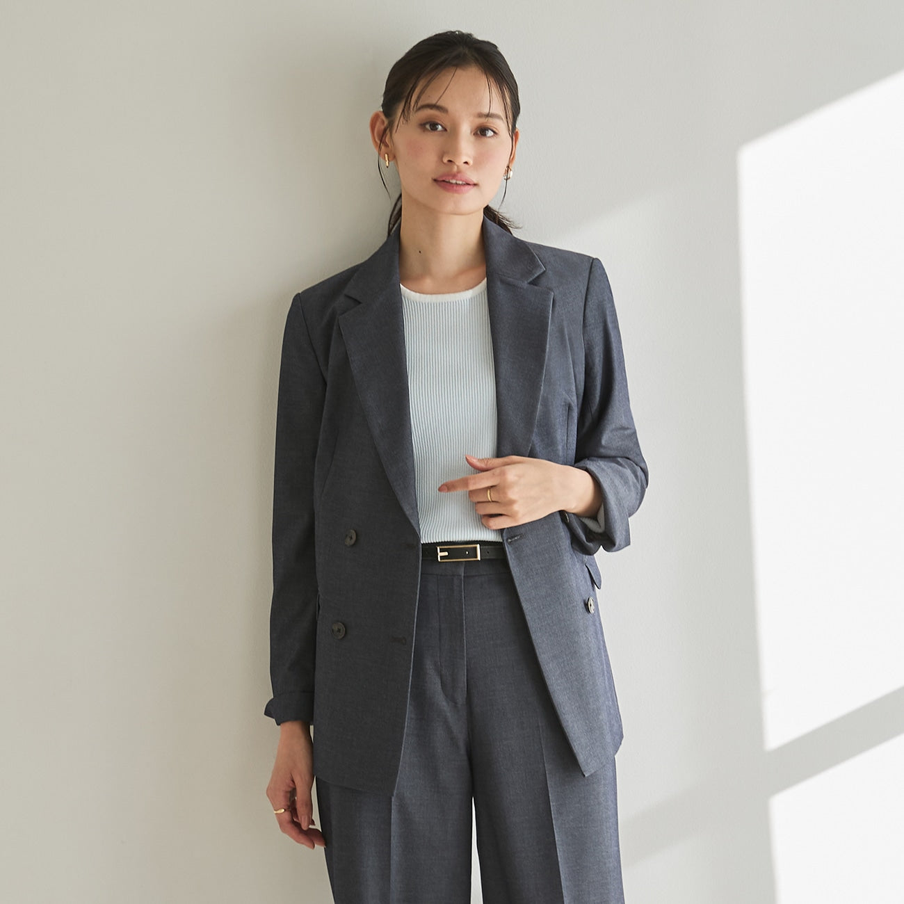 Next-generation "THE THIRD SUITS" double-breasted jacket for versatile styling.