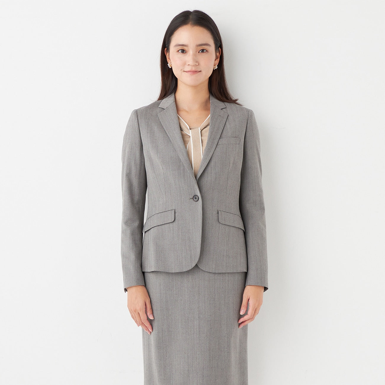 可機洗 Stretch Wool Milled魚骨紋 外套 - 米色
