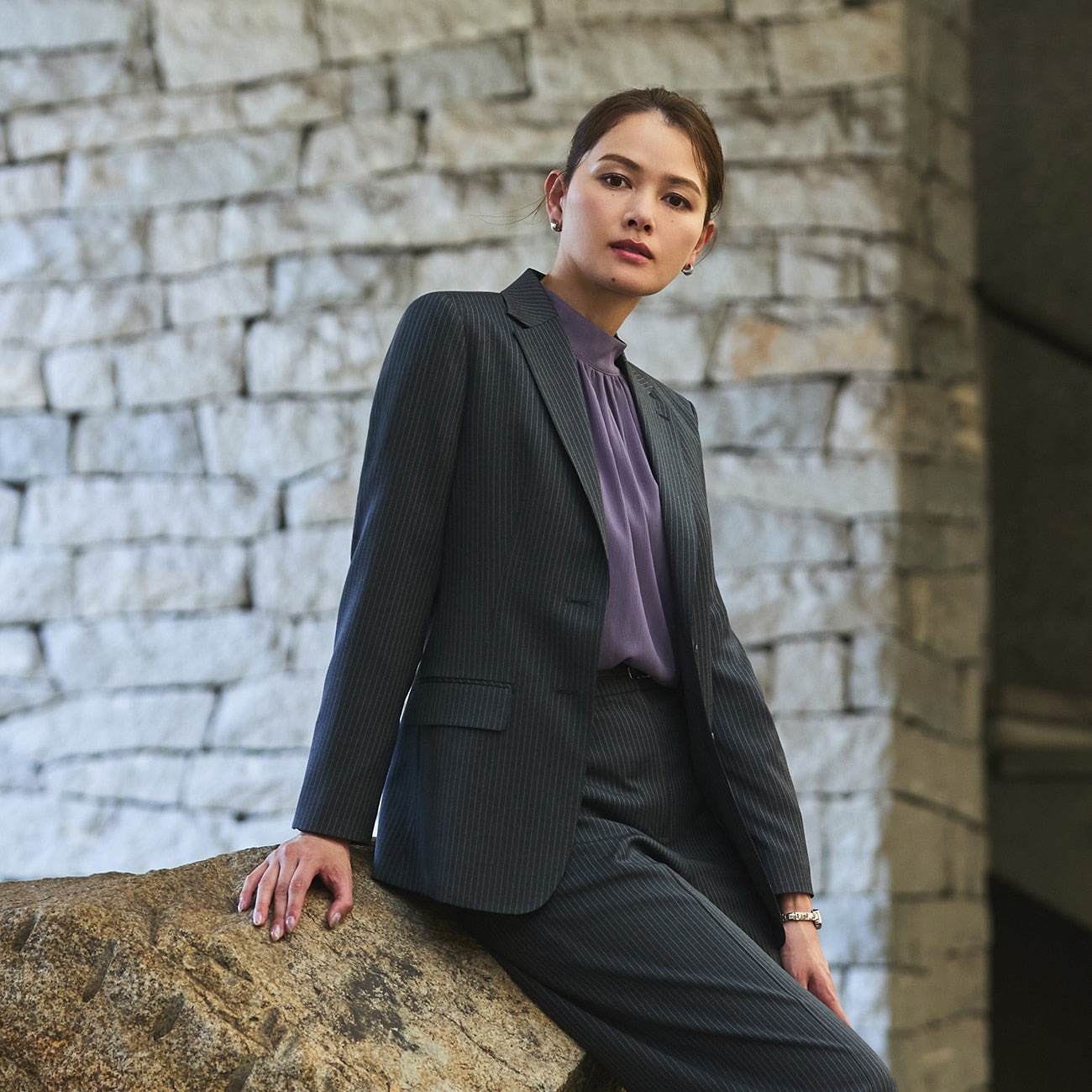 LUXE LineREDA Stripe Long外套 -灰