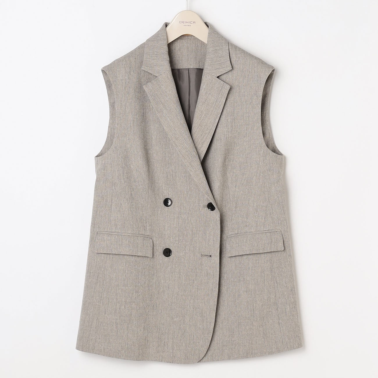 THE THIRD SUITS雙排扣梭織紋西裝背心 米