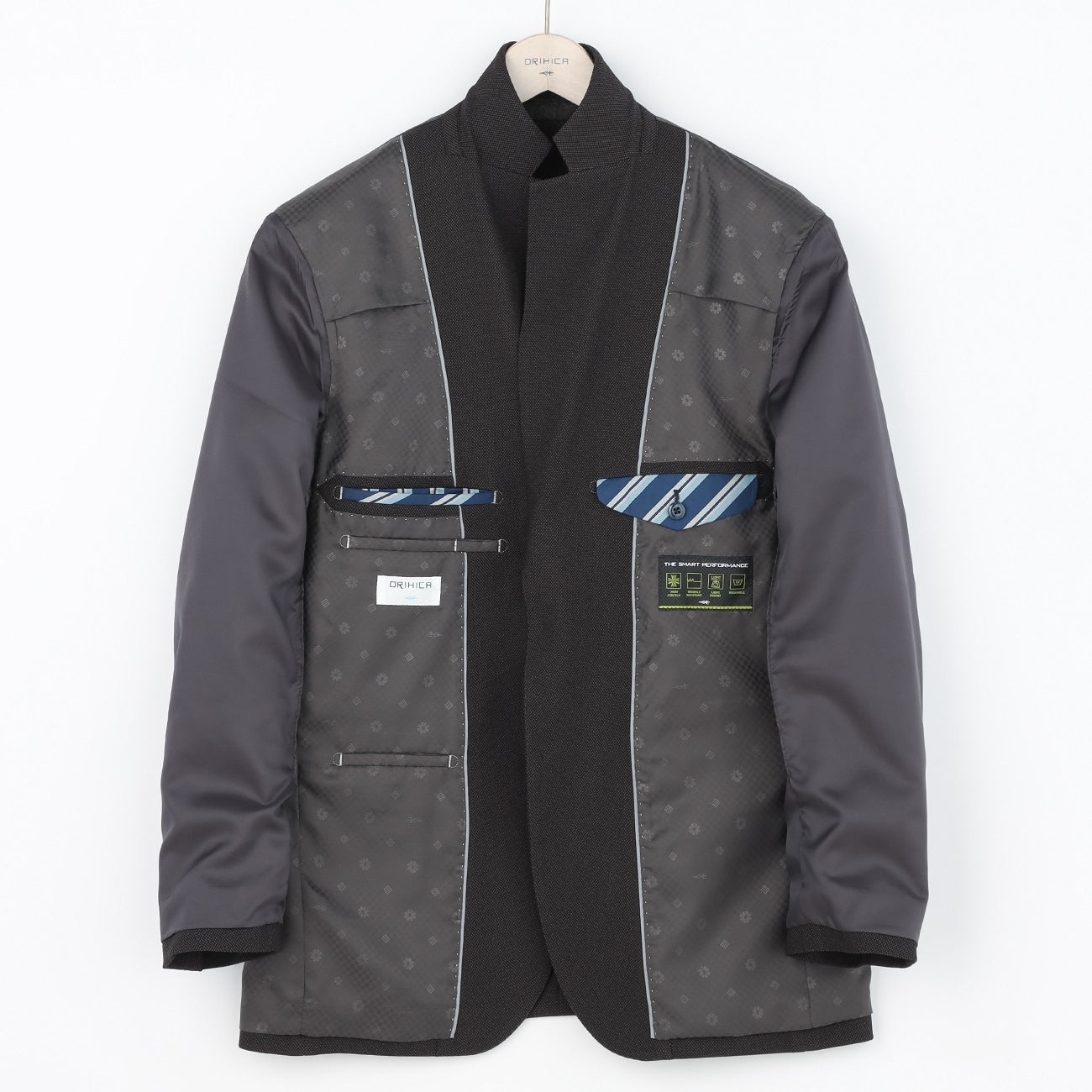 - 三滾二鈕、側開口、非功能性鈕扣、半內襯。