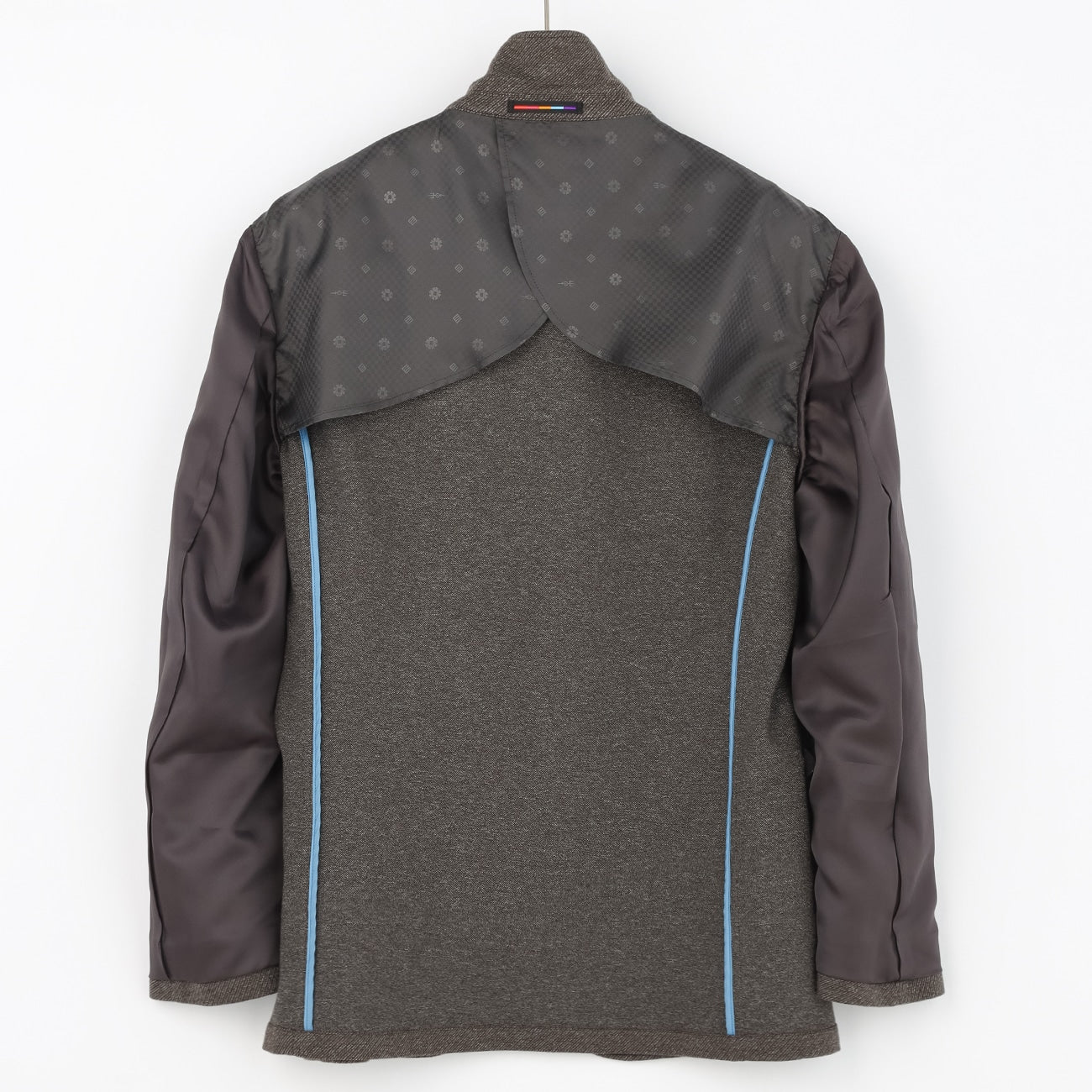 - 雙鈕扣開襟、無通風口、平袖、半襯、貼袋。