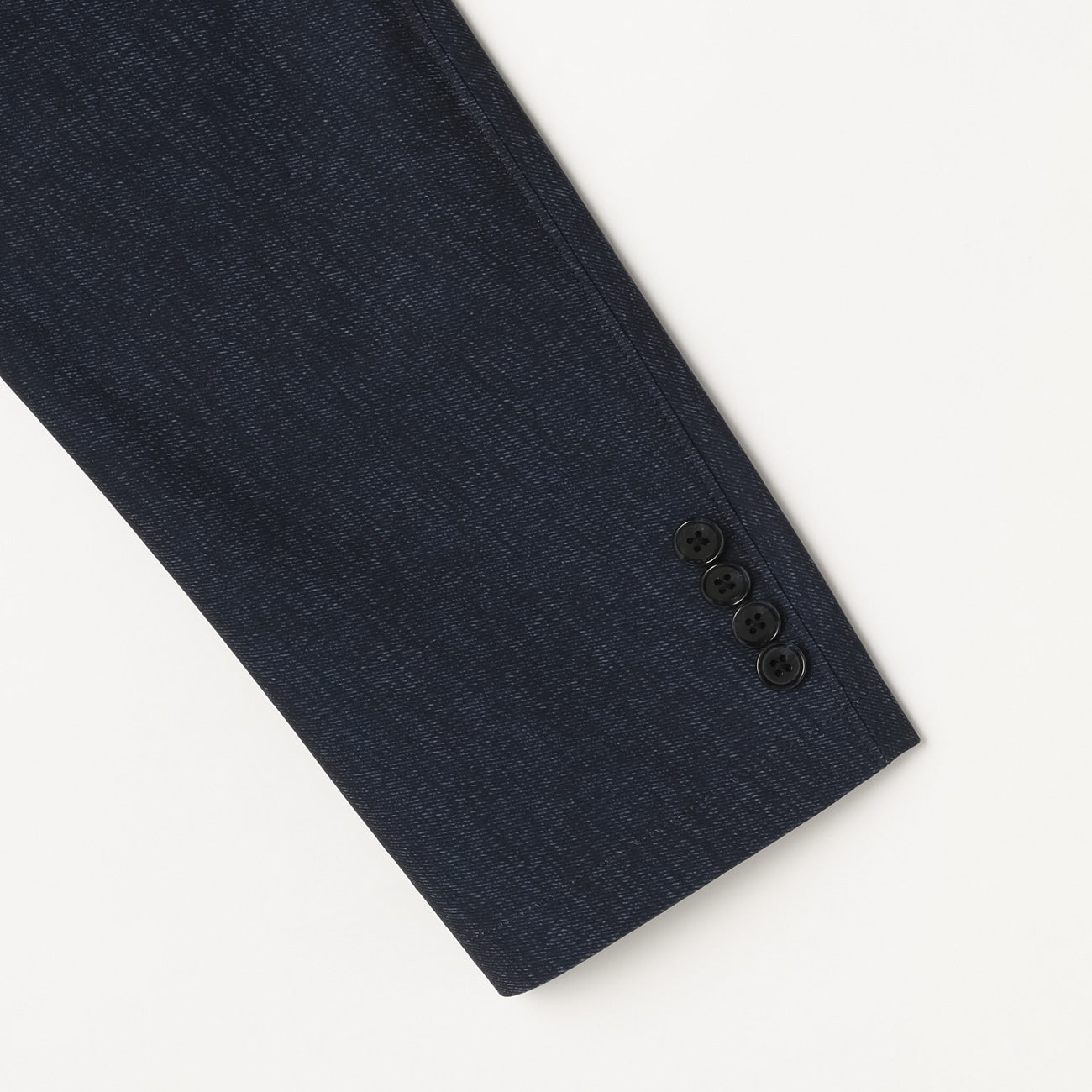 - 2-button, no vent, tubular sleeves with buttons, half-lined (unlined back).