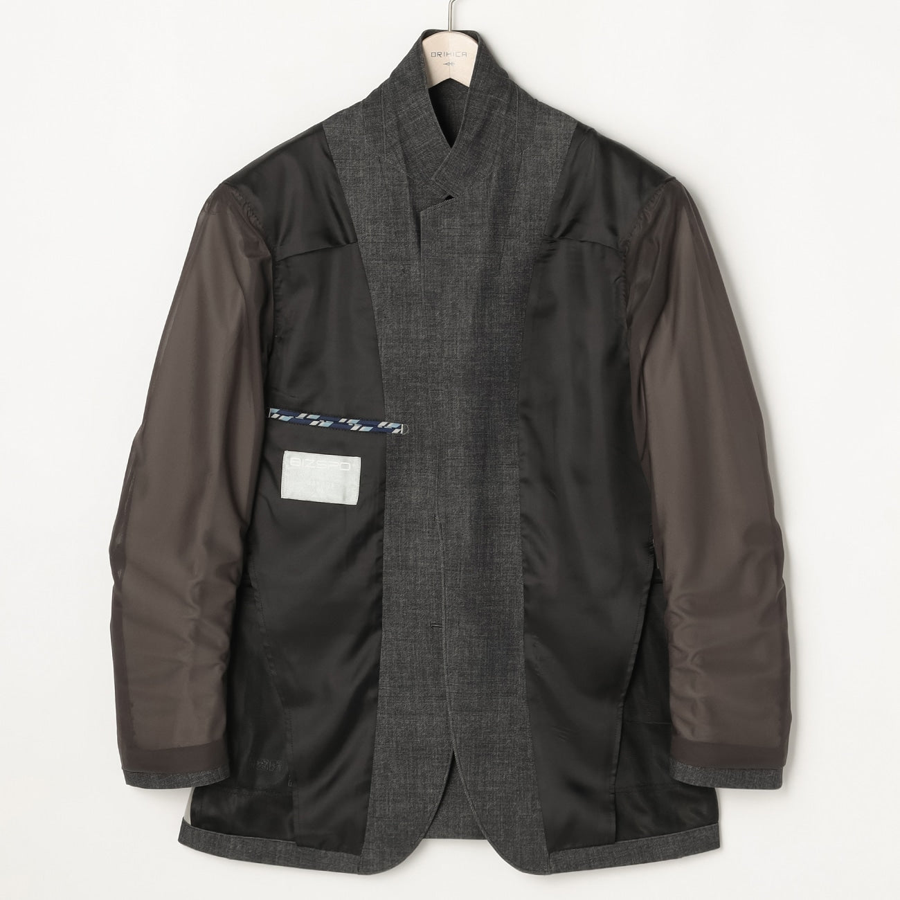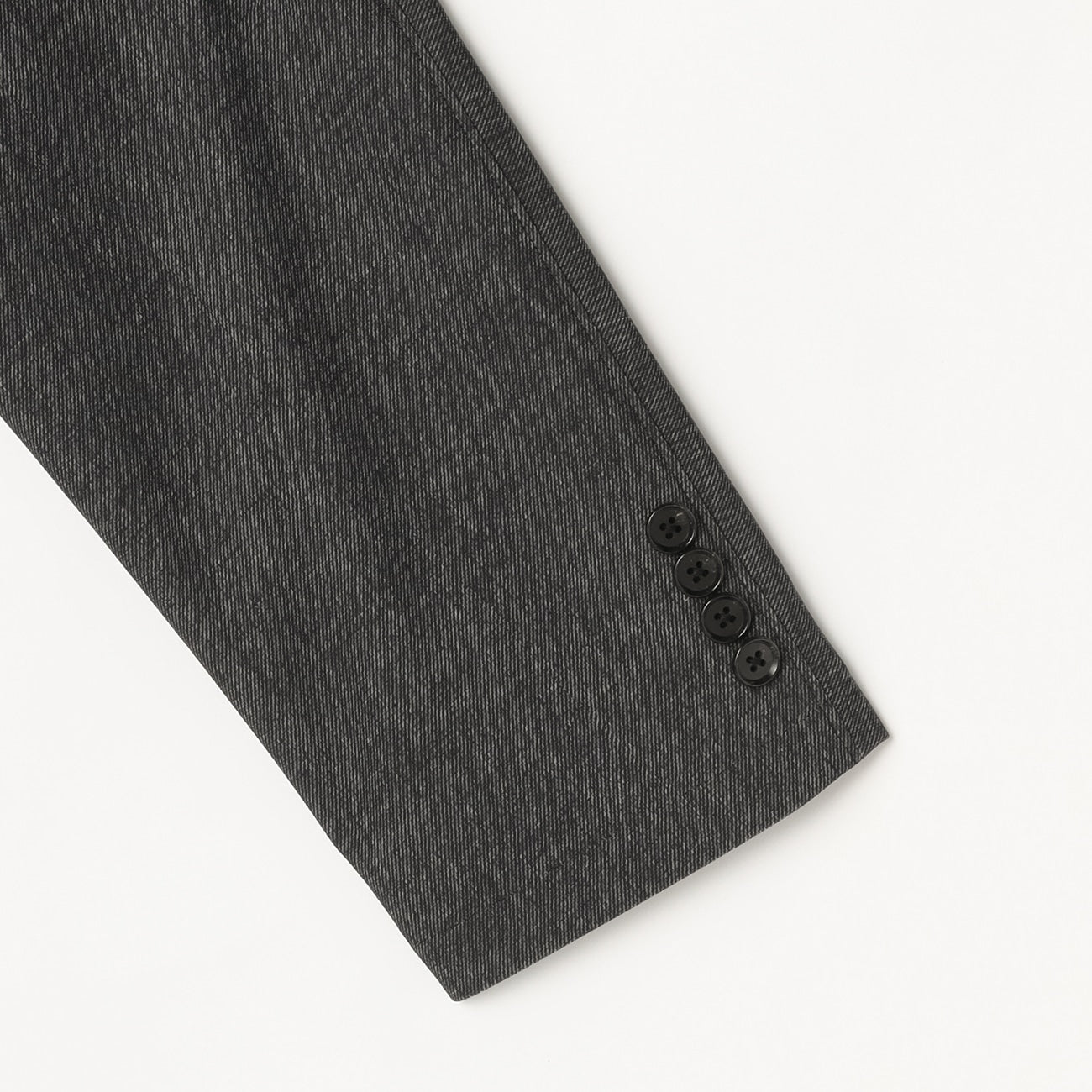 ・西裝外套2顆鈕扣、背後無開衩、袖口假扣眼、半內裏(後背無內裏)