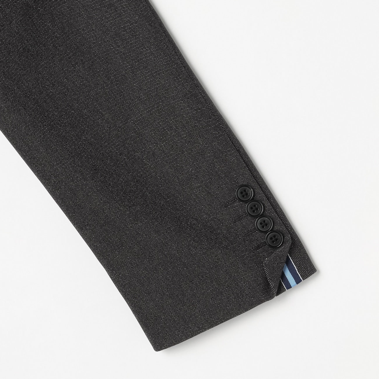 - 2-button, center vent, decorative sleeve buttons, half-lined.