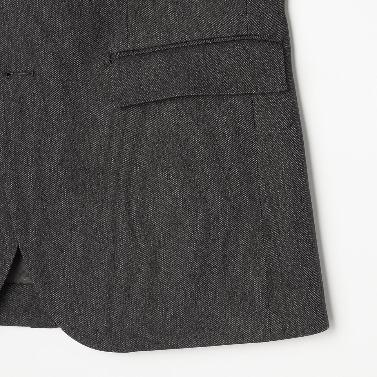 ・西裝外套:2顆鈕扣、背開中叉、袖口假扣眼、半內裏。