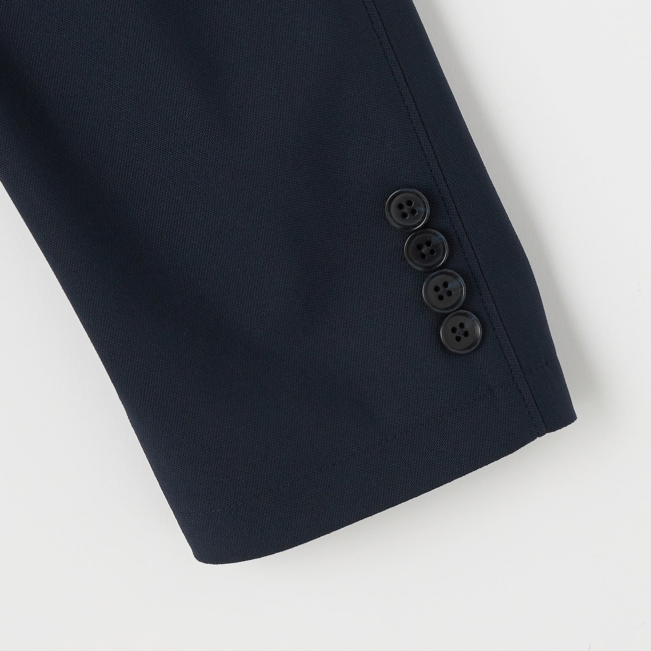 - 2-button, no vent, tubular sleeves with buttons, half-lined.