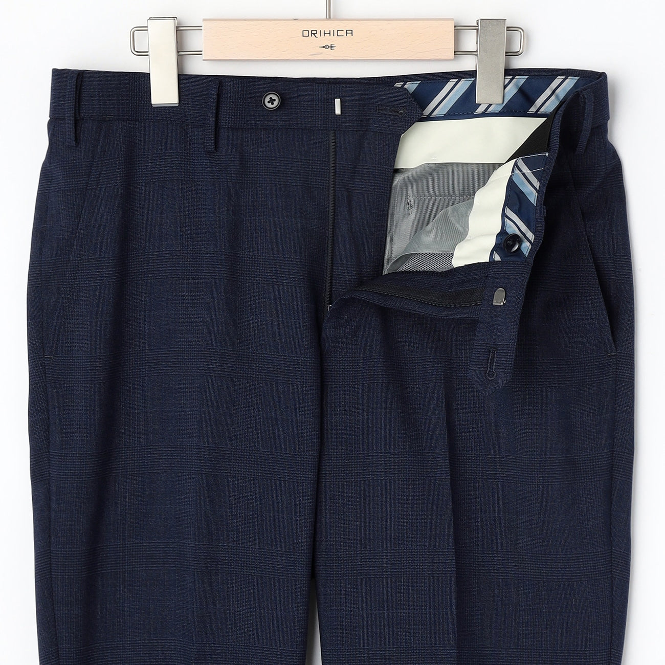 輕彈羊毛混紡葛倫格紋西裝褲 深藍