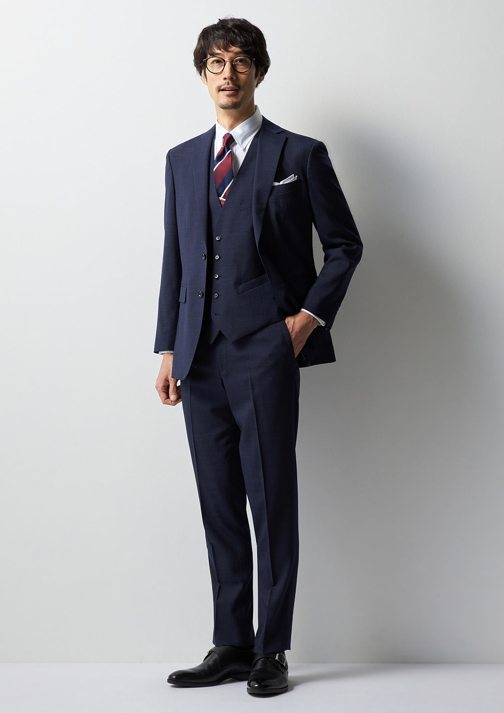 ・專業西裝工廠縫製,版型立體,俐落修身。