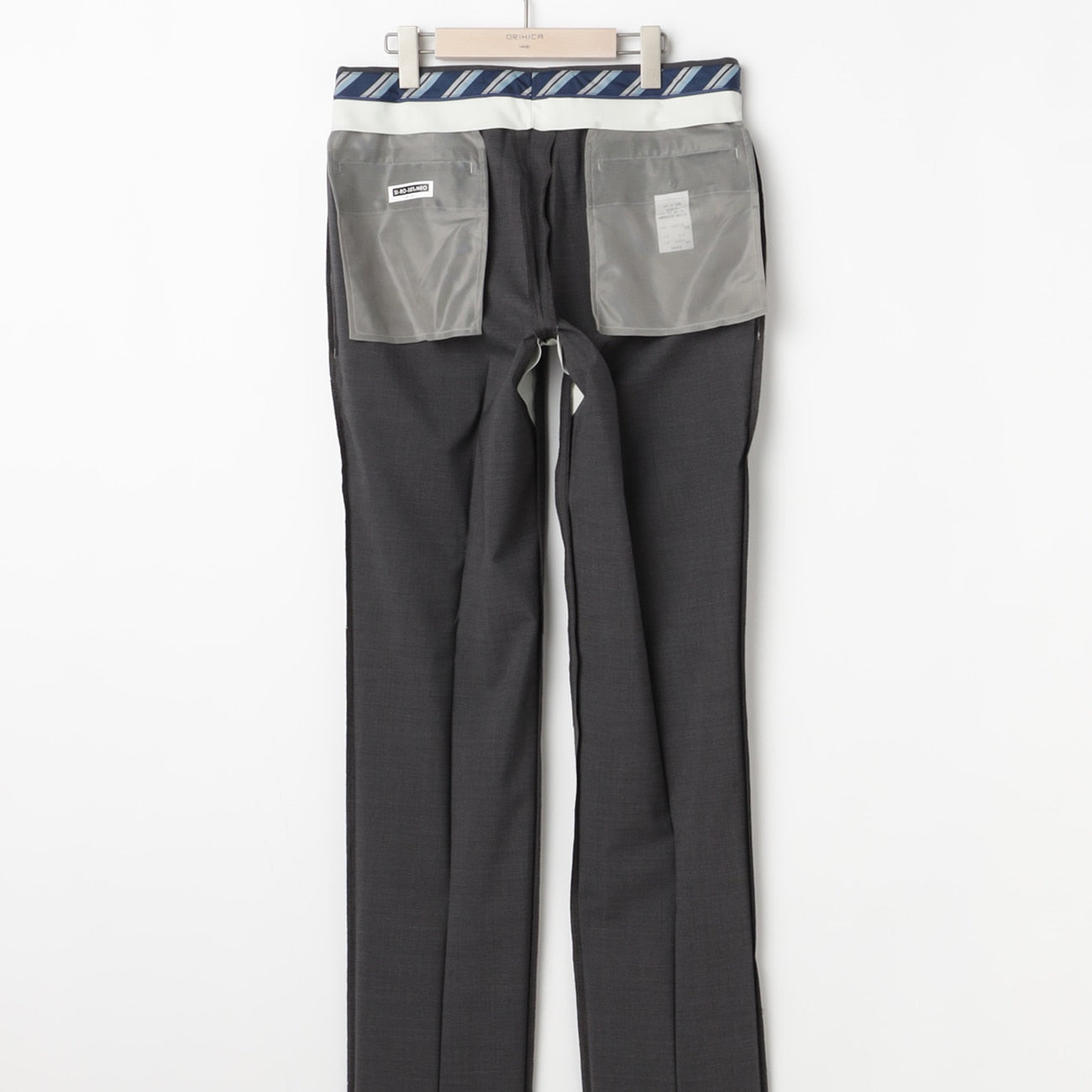 - Hemmed pants.