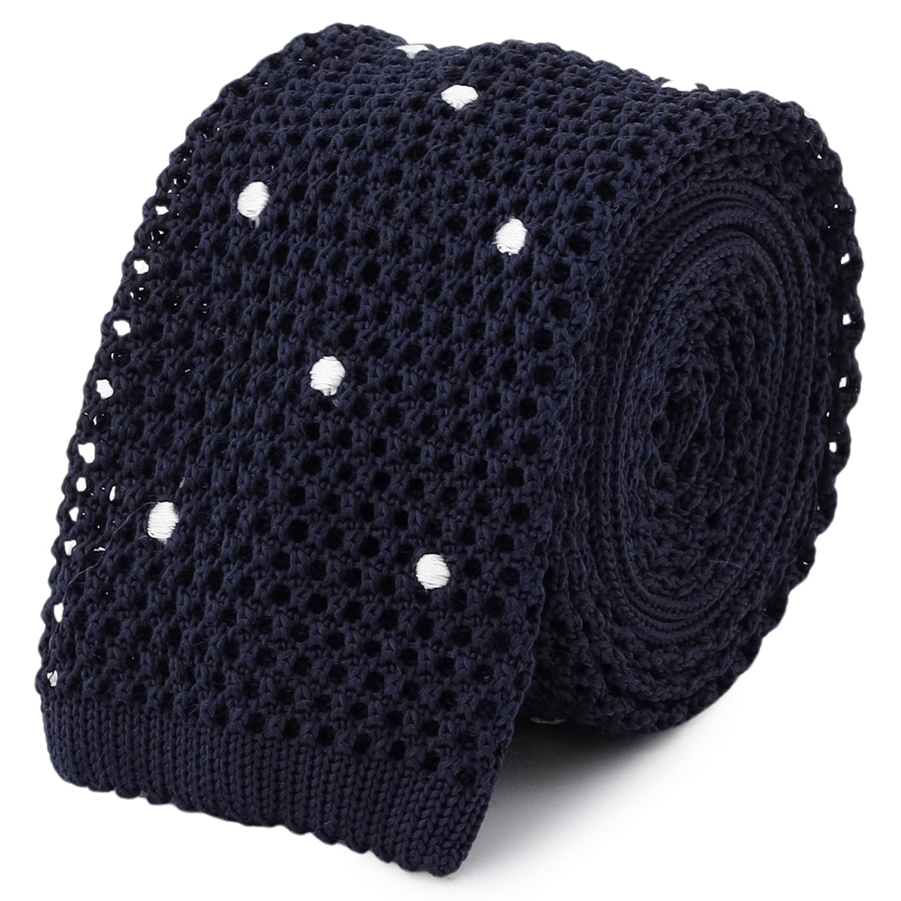 波卡圓點針織領帶 -深藍