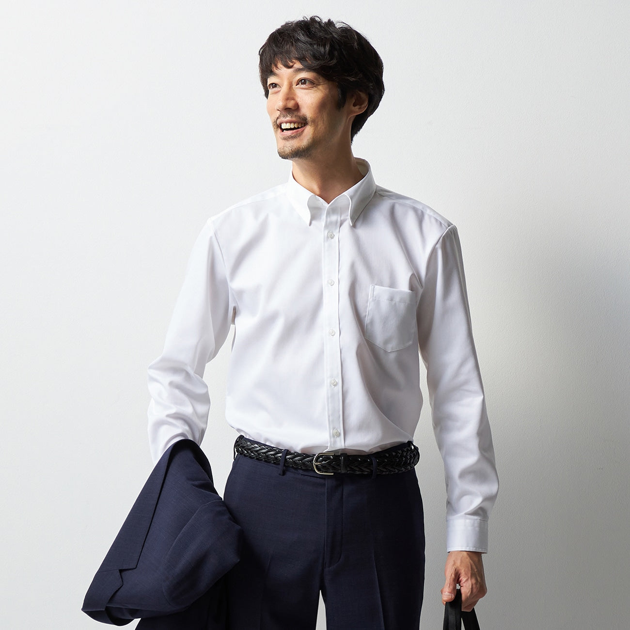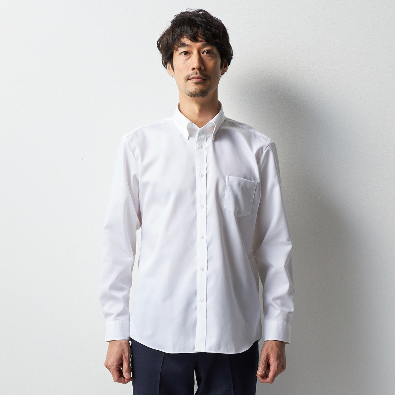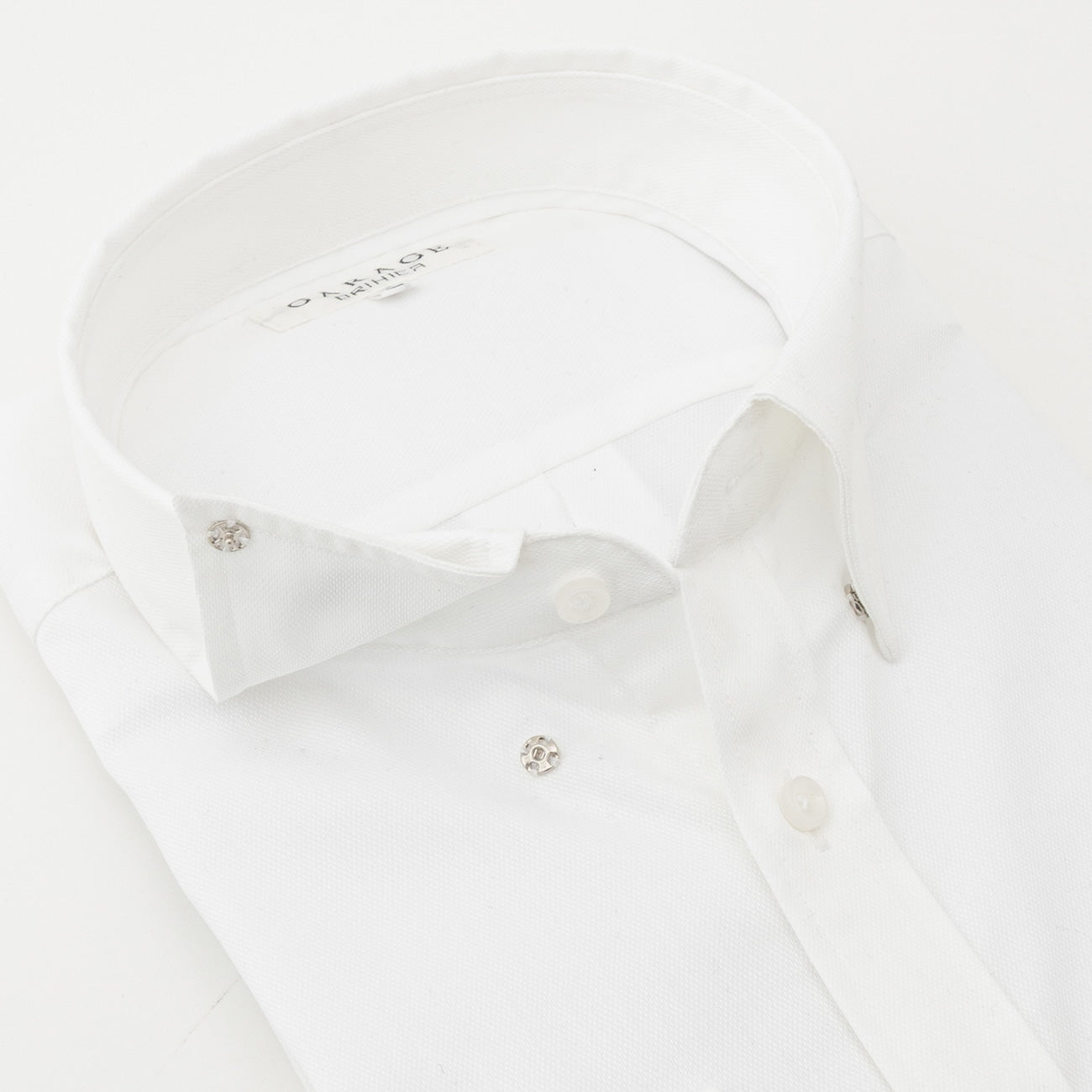 - Balanced button positioning ensures the collar doesn't spread too wide when the top button is undone.