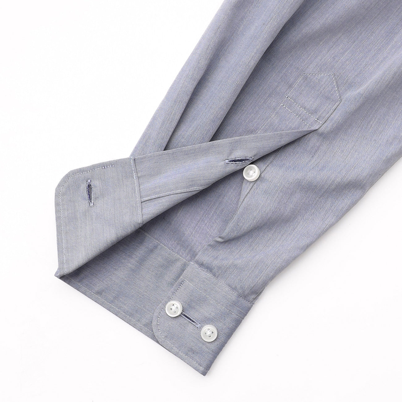 - Balanced button positioning ensures the collar doesn't spread too wide when the top button is undone.