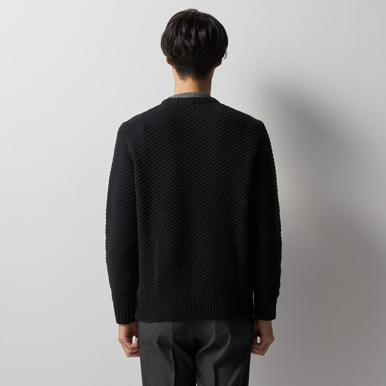 ・針織斜紋為簡約上衣增添精緻細節,俐落不單調。