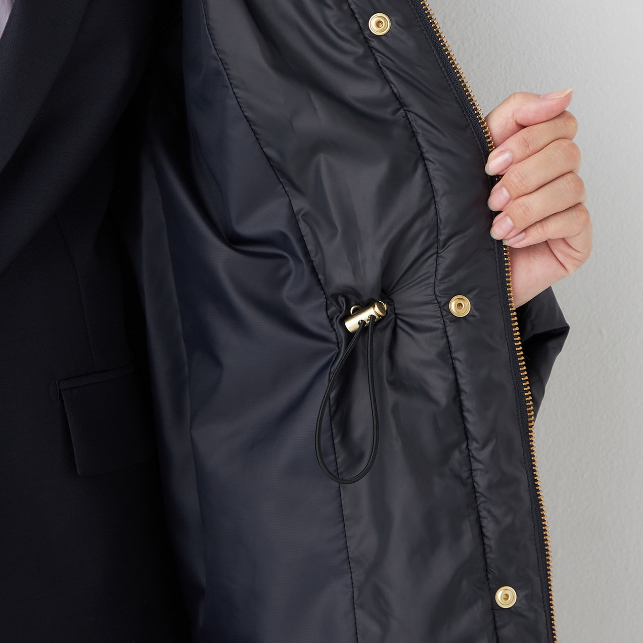- 腰部的可調式 抽繩可讓您自訂輪廓。