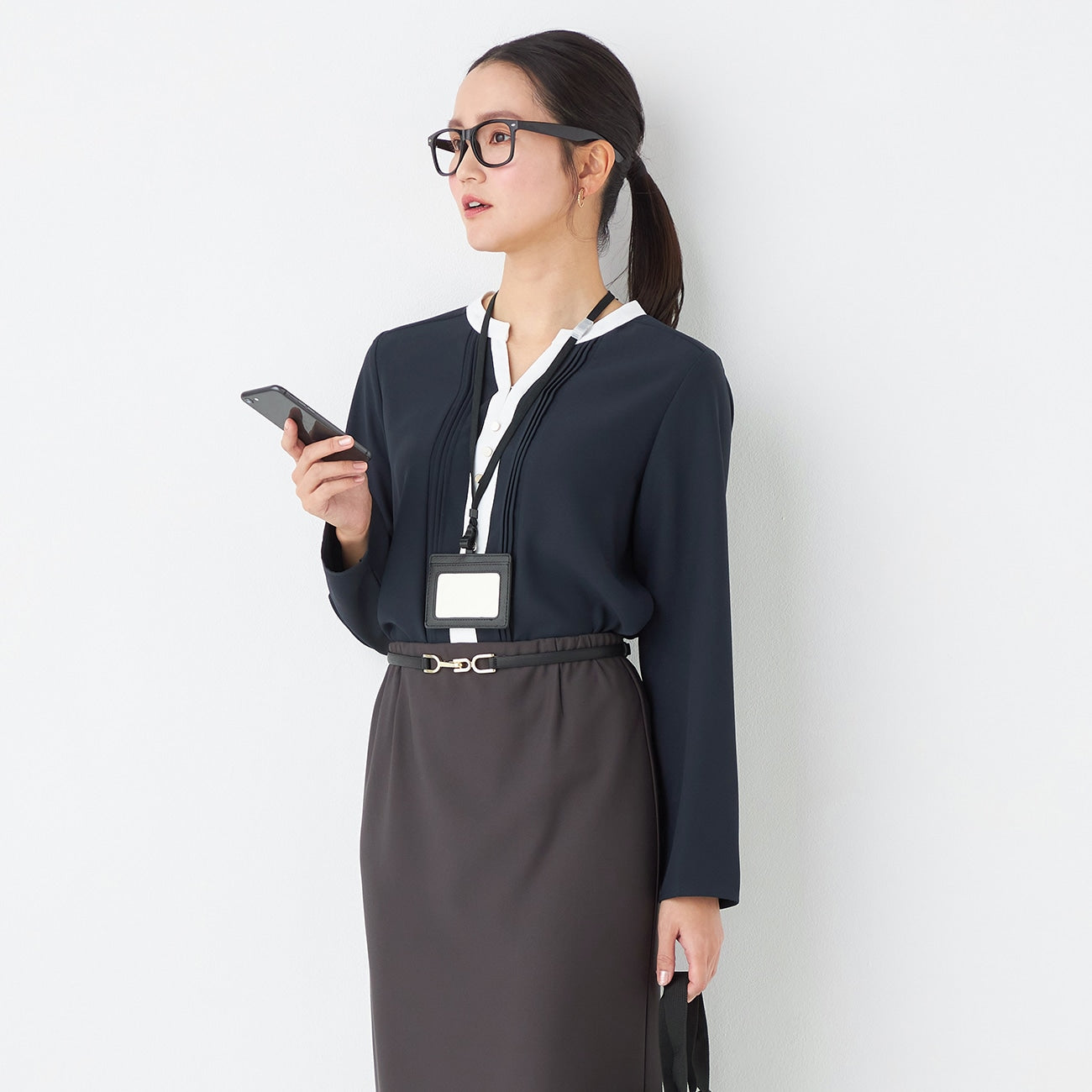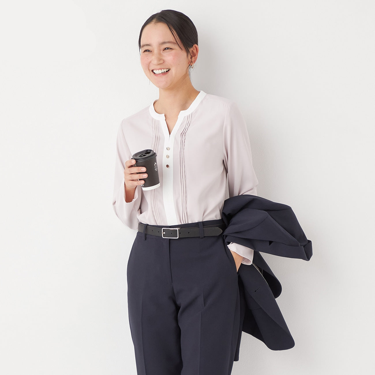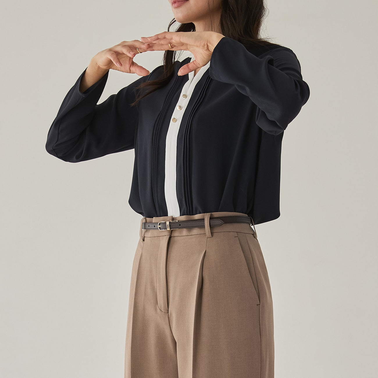 ・小開口領(Key Neck)搭配配色設計,單穿有型,職場搭配西裝外套也實穿。