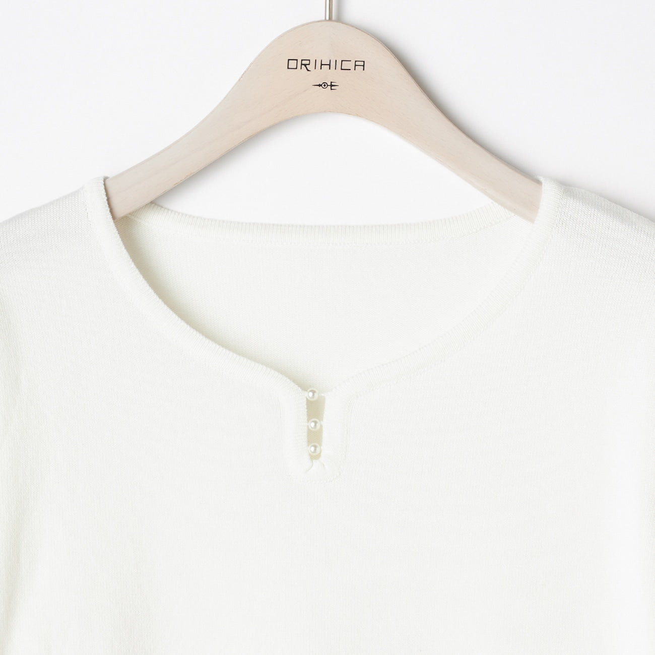 - 領口處的精緻珍珠更添巧妙的點綴。