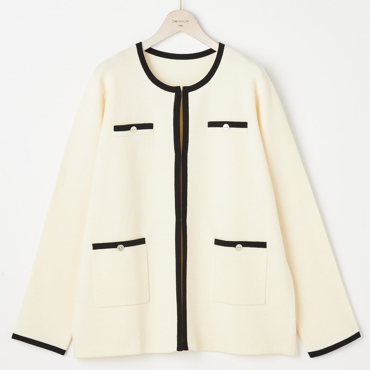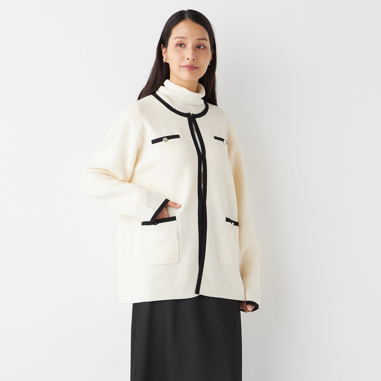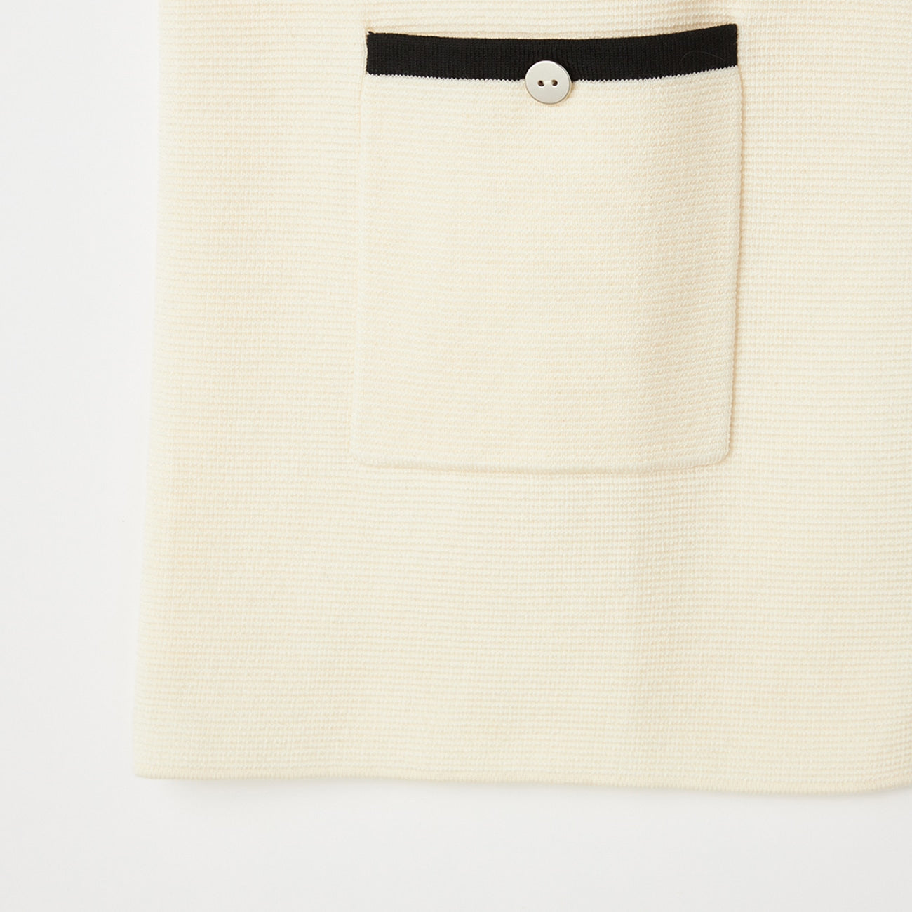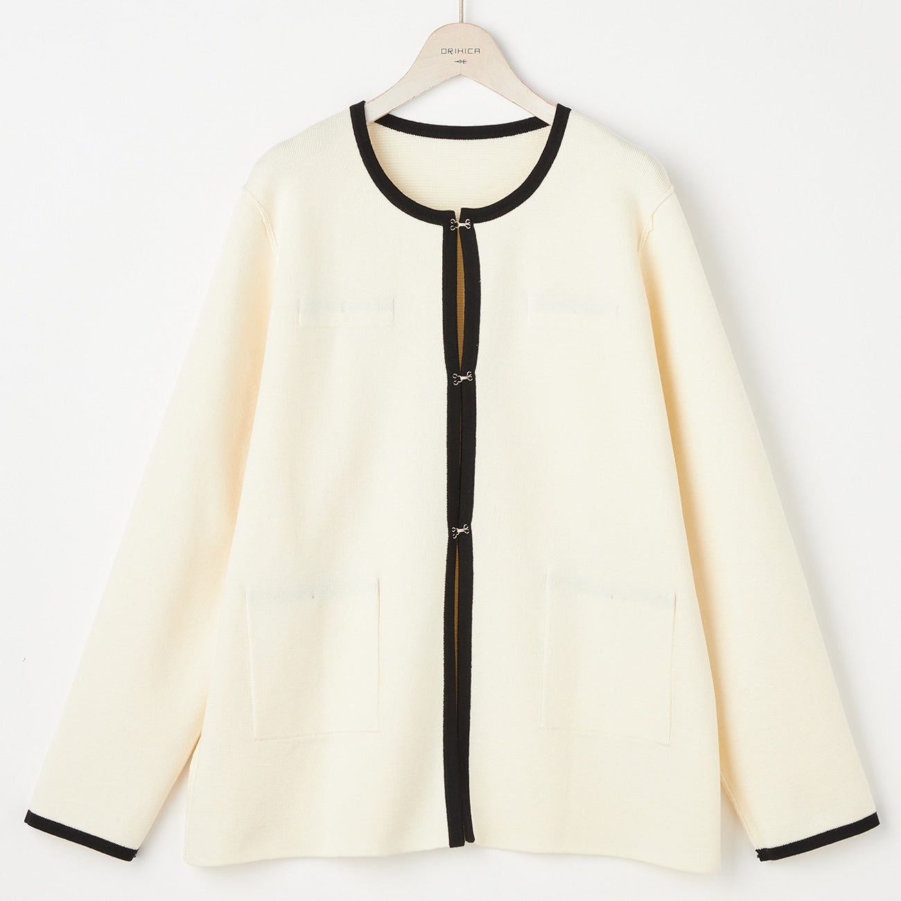 - 前襟鉤眼開關方便穿著,並採用獨特的 Milano 羅紋和褶皺編織圖案。